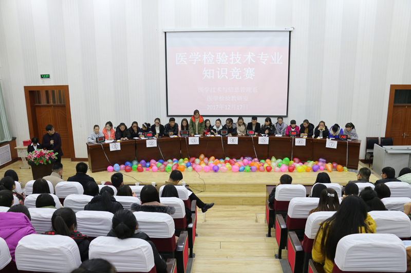 為營(yíng)造良好學(xué)風(fēng),活躍校園文化生活,提高學(xué)生對(duì)專業(yè)知識(shí)、專業(yè)技能的學(xué)習(xí)興趣,推進(jìn)醫(yī)學(xué)檢驗(yàn)技術(shù)專業(yè)的建設(shè)。醫(yī)學(xué)檢驗(yàn)教研室于12月17日晚在尚德樓正德廳舉辦了醫(yī)學(xué)檢驗(yàn)技術(shù)專業(yè)知識(shí)競(jìng)賽,有2016級(jí)、2017級(jí)醫(yī)學(xué)檢驗(yàn)技術(shù)專業(yè)21名同學(xué)參加了此次競(jìng)賽。