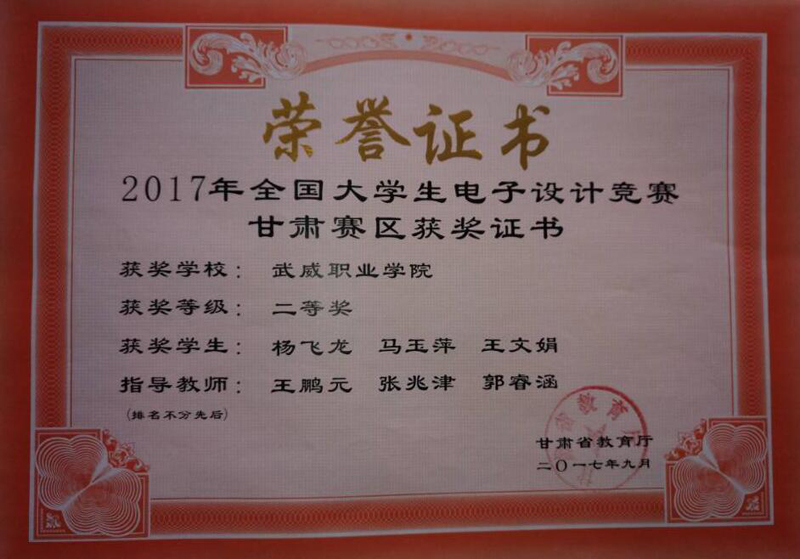 近日,2017年全國大學(xué)生電子設(shè)計(jì)競賽甘肅賽區(qū)成績揭曉。由電子信息工程系2016級應(yīng)用電子技術(shù)專業(yè)楊飛龍、馬玉萍、王文娟3名同學(xué)組成的團(tuán)隊(duì)在我系王鵬元、張兆津、郭睿涵3名教師指導(dǎo)下榮獲甘肅賽區(qū)二等獎(jiǎng)。此次獲獎(jiǎng)也是我系在優(yōu)質(zhì)校建設(shè)中狠抓教學(xué)科研和學(xué)生技能培養(yǎng)方面取得的豐碩成果。