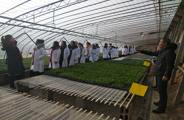 金大鵬專業(yè)合作社張經(jīng)理帶領(lǐng)師生參觀了自動(dòng)化育苗生產(chǎn)車間、育苗大棚等。參觀過程中,張經(jīng)理向?qū)W生詳細(xì)介紹了自動(dòng)化育苗的流程、自動(dòng)化灌溉設(shè)施、引進(jìn)的蔬菜新品種、溫室管理新技術(shù)等。藍(lán)天花卉公司袁經(jīng)理向?qū)W生介紹了常見的花卉品種及生活習(xí)性,學(xué)生們邊走邊看邊記,學(xué)習(xí)熱情異常高漲,真正實(shí)現(xiàn)了在做中學(xué),學(xué)中做。