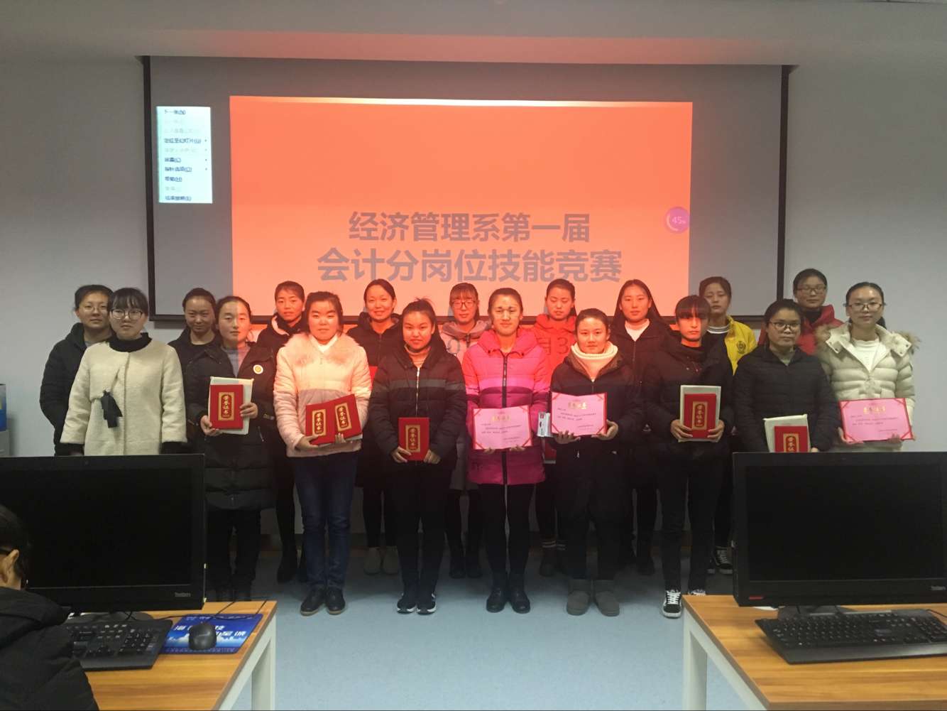 經(jīng)過三個小時的激烈角逐,16級會計大專1班獲得團體一等獎,16級會計大專2班和4班獲得團體二等獎;滿曉紅等4名同學(xué)獲得個人一等獎,苗文嘯等6名同學(xué)獲得個人二等獎,王靜等10名同學(xué)獲得個人三等獎。
