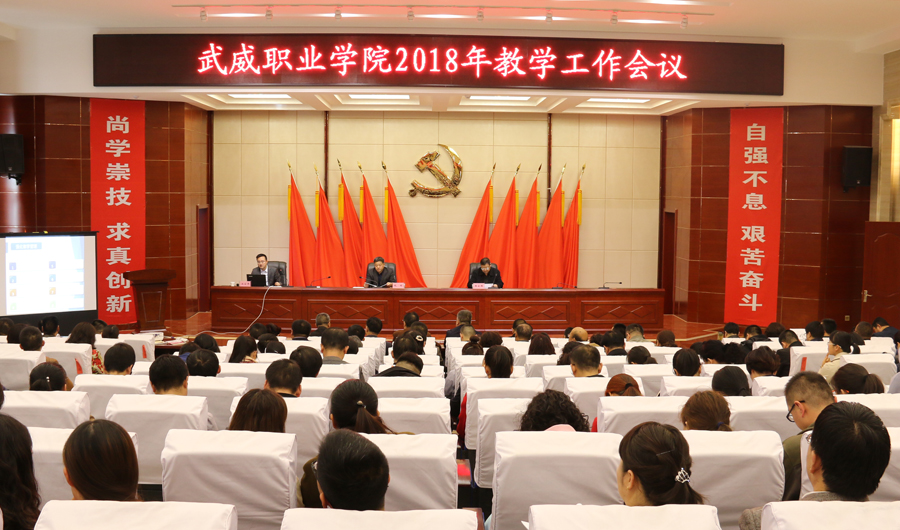 黨委副書記趙明對(duì)學(xué)院2017年教學(xué)工作做了簡(jiǎn)要回顧與總結(jié),結(jié)合全國(guó)全省教育工作會(huì)議精神,深入分析了學(xué)院目前面臨的困難與存在的問(wèn)題,從八個(gè)方面對(duì)2018年學(xué)院教學(xué)重點(diǎn)工作做了安排部署。一是加強(qiáng)思想政治建設(shè),貫徹落實(shí)中央決策部署。學(xué)習(xí)貫徹習(xí)近平新時(shí)代中國(guó)特色社會(huì)主義思想和黨的十九大精神,貫徹落實(shí)全國(guó)教育大會(huì)精神,細(xì)化落實(shí)職業(yè)教育具體工作措施。二是深化改革,增強(qiáng)辦學(xué)活力。堅(jiān)持依法治校,繼續(xù)完善內(nèi)部治理體系,加強(qiáng)學(xué)術(shù)委員會(huì)、職稱評(píng)審委員會(huì)建設(shè),健全管理體系和運(yùn)行機(jī)制,大力推進(jìn)人才培養(yǎng)模式改革和招生考試制度改革。三是強(qiáng)化內(nèi)涵,全力推進(jìn)優(yōu)質(zhì)高職院校建設(shè)。抓實(shí)推進(jìn)優(yōu)質(zhì)高職院校6個(gè)模塊19個(gè)項(xiàng)目94項(xiàng)任務(wù)312條子任務(wù)的建設(shè)工作,加強(qiáng)內(nèi)部協(xié)調(diào),全力推進(jìn)。加強(qiáng)專業(yè)內(nèi)涵建設(shè)和實(shí)踐教學(xué)內(nèi)涵建設(shè),建立一批優(yōu)質(zhì)特色專業(yè)和一批高水平生產(chǎn)性實(shí)訓(xùn)基地;積極開展創(chuàng)新創(chuàng)業(yè)教育實(shí)踐活動(dòng),加大社會(huì)培訓(xùn)力度,積極探索開展國(guó)際合作與交流;加強(qiáng)智慧校園和校園文化建設(shè)。四是優(yōu)化結(jié)構(gòu),全力打造一批高水平優(yōu)質(zhì)特色專業(yè)。利用直屬附屬醫(yī)院、校辦企業(yè)武威泰豐新能源有限責(zé)任、甘肅(武威)國(guó)際陸港和武威保稅物流中心等優(yōu)勢(shì),加快重點(diǎn)專業(yè)建設(shè)力度,打造3~5個(gè)國(guó)家級(jí)高水平優(yōu)質(zhì)特色專業(yè)。五是合作培養(yǎng),著力打造專兼結(jié)合的高水平教師隊(duì)伍。大力實(shí)施教師素質(zhì)提升工程,完善同濟(jì)大學(xué)編制的《武威職業(yè)學(xué)院師資能力提升培訓(xùn)方案》,落實(shí)西安交通大學(xué)、天津職業(yè)大學(xué)簽訂的合作協(xié)議,推進(jìn)教師教學(xué)發(fā)展中心建設(shè)與運(yùn)行,強(qiáng)化專業(yè)帶頭人、新進(jìn)教師、骨干教師、優(yōu)秀青年教師的培養(yǎng)力度。六是育人為本,關(guān)注學(xué)生成長(zhǎng)成才。優(yōu)化育人環(huán)境,開足開好思想政治類、人文素養(yǎng)提升類課程,開展校內(nèi)職業(yè)技能競(jìng)賽,鼓勵(lì)支持參加省級(jí)以上比賽,培養(yǎng)學(xué)生能力。七是深化產(chǎn)教融合,提升社會(huì)服務(wù)水平。充分發(fā)揮職業(yè)教育集團(tuán)作用,深化“職業(yè)教育+產(chǎn)業(yè)園區(qū)+生產(chǎn)基地”的校企合作模式;提升校辦企業(yè)、直屬附屬醫(yī)院的教學(xué)服務(wù)功能;各專業(yè)要拓展產(chǎn)教融合渠道,精準(zhǔn)施策,服務(wù)國(guó)家戰(zhàn)略。八是完善質(zhì)量保障機(jī)制,提升人才培養(yǎng)質(zhì)量。編制并逐步推行教學(xué)工作診斷與改進(jìn)方案,學(xué)習(xí)實(shí)施精細(xì)化管理模式,加大教學(xué)督查力度,規(guī)范教學(xué)秩序,提高教育教學(xué)管理水平。