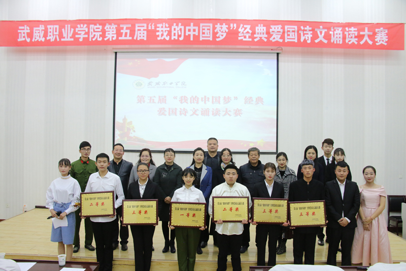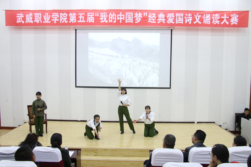 全場比賽以“我的中國夢”為切入點,誦詩抒情、借詞言志,傳承中華民族經典愛國詩詞和優(yōu)秀傳統(tǒng)文化,培育與踐行社會主義核心價值觀。各參賽作品融入了歌曲、場景表演等多種藝術形式,進一步激發(fā)了同學們的愛國熱情和報國之志。經過激烈角逐,醫(yī)學技術與信息管理系選送的作品《永遠的格桑梅朵》榮獲一等獎;人文藝術教育系選送的作品《我的墓碑》、護理系選送的作品《人民萬歲》榮獲二等獎;現(xiàn)代農業(yè)技術系選送的作品《我的爸爸》、汽車工程系選送的作品《海棠花祭》、建筑工程系選送的作品《中國軍魂》榮獲三等獎。