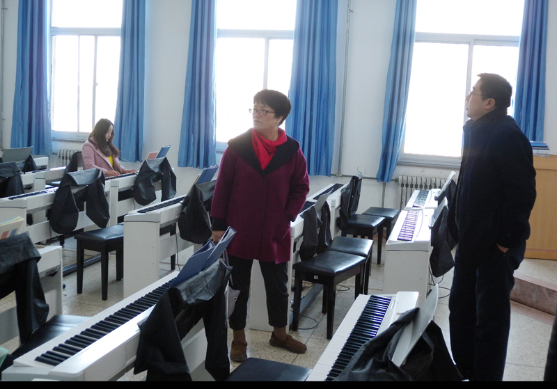 會后妙學(xué)春一行在胡靜峰同志的陪同下參觀了電鋼琴實訓(xùn)室和舞蹈實訓(xùn)室。