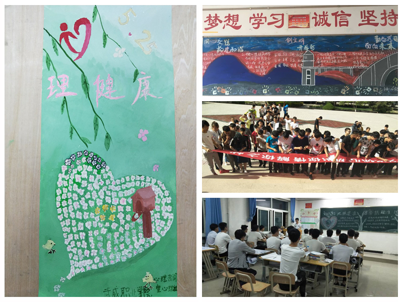 建筑工程系各班以“綠色環(huán)保,低碳生活”開展了主題班會(huì),為同學(xué)們建立全新的生活觀,養(yǎng)成良好的生活習(xí)慣。而手機(jī)對(duì)現(xiàn)在青少年的危害越來越大,嚴(yán)重影響正常生活學(xué)習(xí)。同時(shí)以“放下手機(jī),走出宿舍”為主題的黑板報(bào),教育引導(dǎo)同學(xué)們多去外面看看,更多關(guān)注外面精彩世界。各班以心理健康知識(shí)競(jìng)賽、心理健康美文朗誦、心理健康漫畫等多種形式宣傳更多心理健康知識(shí),幫助同學(xué)們更好的調(diào)解好自己的心情,爭(zhēng)做健康積極的學(xué)生。最后全系學(xué)生在博學(xué)樓前舉行以“交出你心,說出你情,解你之憂”為主題的橫幅簽名,讓同學(xué)們更好的關(guān)注自己的心理健康和心理成長(zhǎng)。