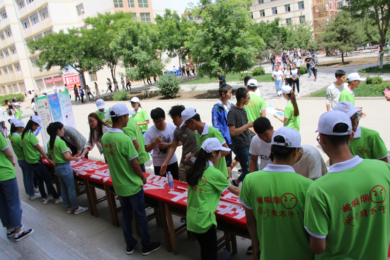 下午,100多名志愿者在學(xué)院一號(hào)、二號(hào)餐廳門口舉辦了 “世界無煙日”主題宣傳活動(dòng)?;顒?dòng)現(xiàn)場(chǎng),通過展板宣傳、資料發(fā)放、橫幅簽名、控?zé)焺窠獾刃问?,宣傳了吸煙的危害,推廣普及健康知識(shí),倡導(dǎo)無煙健康生活方式,呼吁全院師生拒絕煙草、控?zé)熉募s,為建設(shè)一個(gè)清新無煙的環(huán)境努力奮斗!志愿者們還開展了撿拾煙頭活動(dòng),并在廁所、樓道等公共場(chǎng)所張貼禁煙、節(jié)水、光盤行動(dòng)等內(nèi)容的宣傳貼,以實(shí)際行動(dòng)助力文明校園創(chuàng)建、文明城市創(chuàng)建。