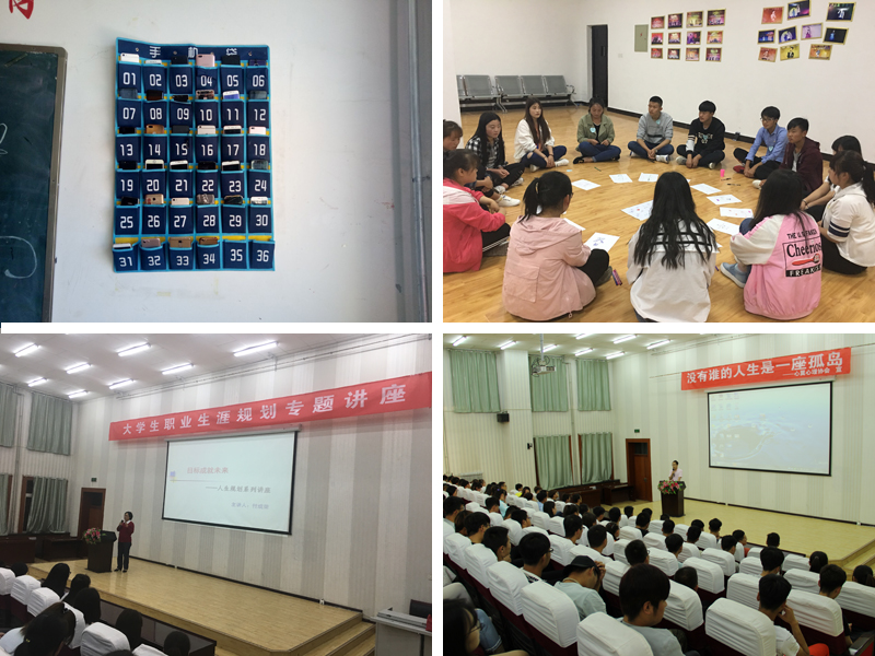 活動(dòng)期間,學(xué)生工作處邀請(qǐng)專業(yè)老師面向全院學(xué)生做“職業(yè)生涯規(guī)劃”和“人際關(guān)系處理”專題講座4場(chǎng),解答學(xué)生對(duì)所學(xué)專業(yè)和就業(yè)前景的迷惑,幫助學(xué)生解決人際交往中出現(xiàn)的各種困惑。通過(guò)團(tuán)體輔導(dǎo)、沙盤游戲、放松減壓等活動(dòng)緩解學(xué)生學(xué)習(xí)和生活壓力。各系積極配合心理健康教育咨詢中心組織召開(kāi)了“愛(ài)護(hù)環(huán)境、低碳生活”主題班會(huì),倡導(dǎo)大學(xué)生愛(ài)護(hù)校園環(huán)境,勤儉節(jié)約、低碳生活;開(kāi)展了“放下手機(jī),走出宿舍”宣傳教育活動(dòng),引導(dǎo)學(xué)生養(yǎng)成健康的學(xué)習(xí)生活方式;制作手機(jī)掛袋,要求學(xué)生上課收起手機(jī),回歸課堂,提高學(xué)習(xí)效率。各系還根據(jù)專業(yè)特點(diǎn)開(kāi)展心理知識(shí)競(jìng)賽、心理健康知識(shí)手抄報(bào)、心理健康座談會(huì)、播放心理影片、最美笑臉收集等形式多樣的系列活動(dòng)。活動(dòng)內(nèi)容豐富,學(xué)生受益面廣,達(dá)到了預(yù)期效果。