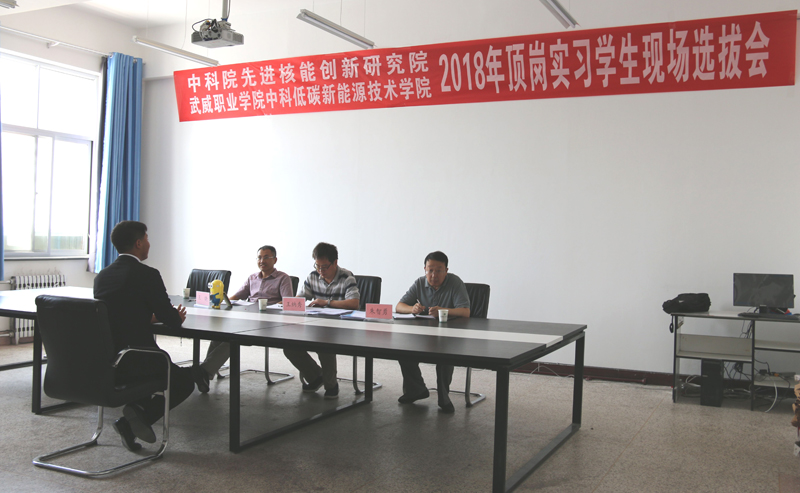 ? ? 2018年6月21日,中國科學(xué)院先進核能創(chuàng)新研究院在學(xué)院舉行了2018年頂崗實習(xí)學(xué)生現(xiàn)場選撥會,由中科院先進核能創(chuàng)新研究院綜合管理部常務(wù)副主任王納秀、熔鹽機械部熱工組組長王曉和中科武威新能源研究所所長朱智勇組成的專家組對能源類專業(yè)和機械類專業(yè)學(xué)生進行了現(xiàn)場面試,遴選出的14名同學(xué)將于7月份前往中國科學(xué)院先進核能創(chuàng)新研究院進行為期一年的專業(yè)頂崗實習(xí),他們將在中科院先進核能創(chuàng)新研究院專家教授的帶領(lǐng)下,通過一對一指導(dǎo)和崗位輪訓(xùn)等形式全面系統(tǒng)完成頂崗實習(xí),了解行業(yè)技術(shù)需求和技術(shù)最新進展,掌握更多的專業(yè)知識和實踐技能,感受頂級科研院所深厚的科技氛圍和文化氛圍,全面提升專業(yè)水平和綜合素養(yǎng),為成功走向社會奠定良好的基礎(chǔ)。