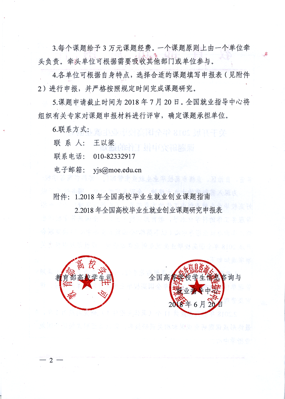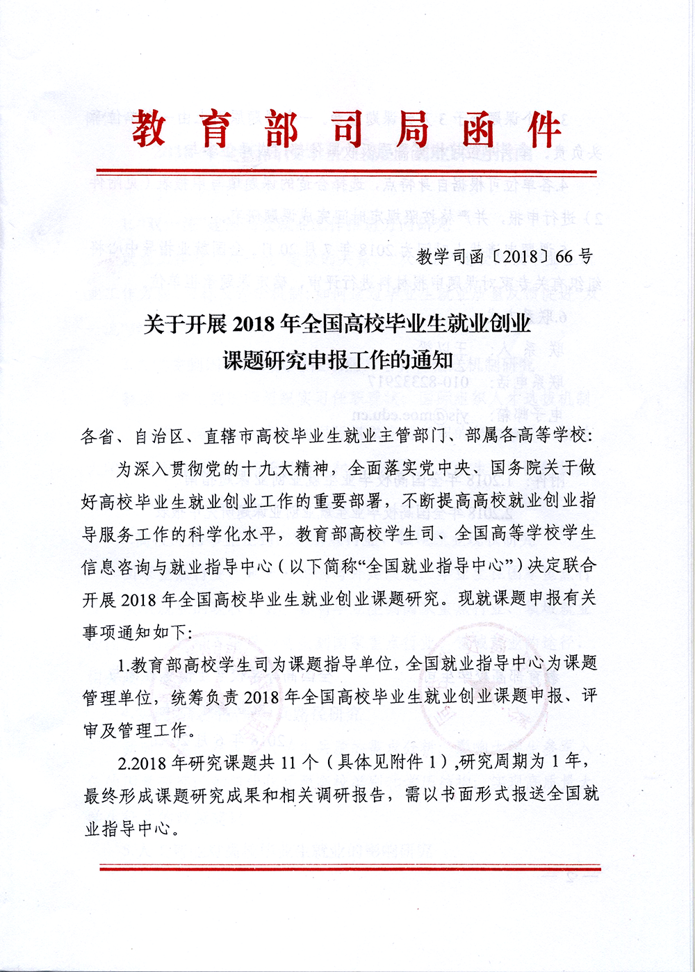 關(guān)于開(kāi)展2018年全國(guó)高校畢業(yè)生就業(yè)創(chuàng)業(yè)課題研究申報(bào)工作的通知(附件1、附件2)