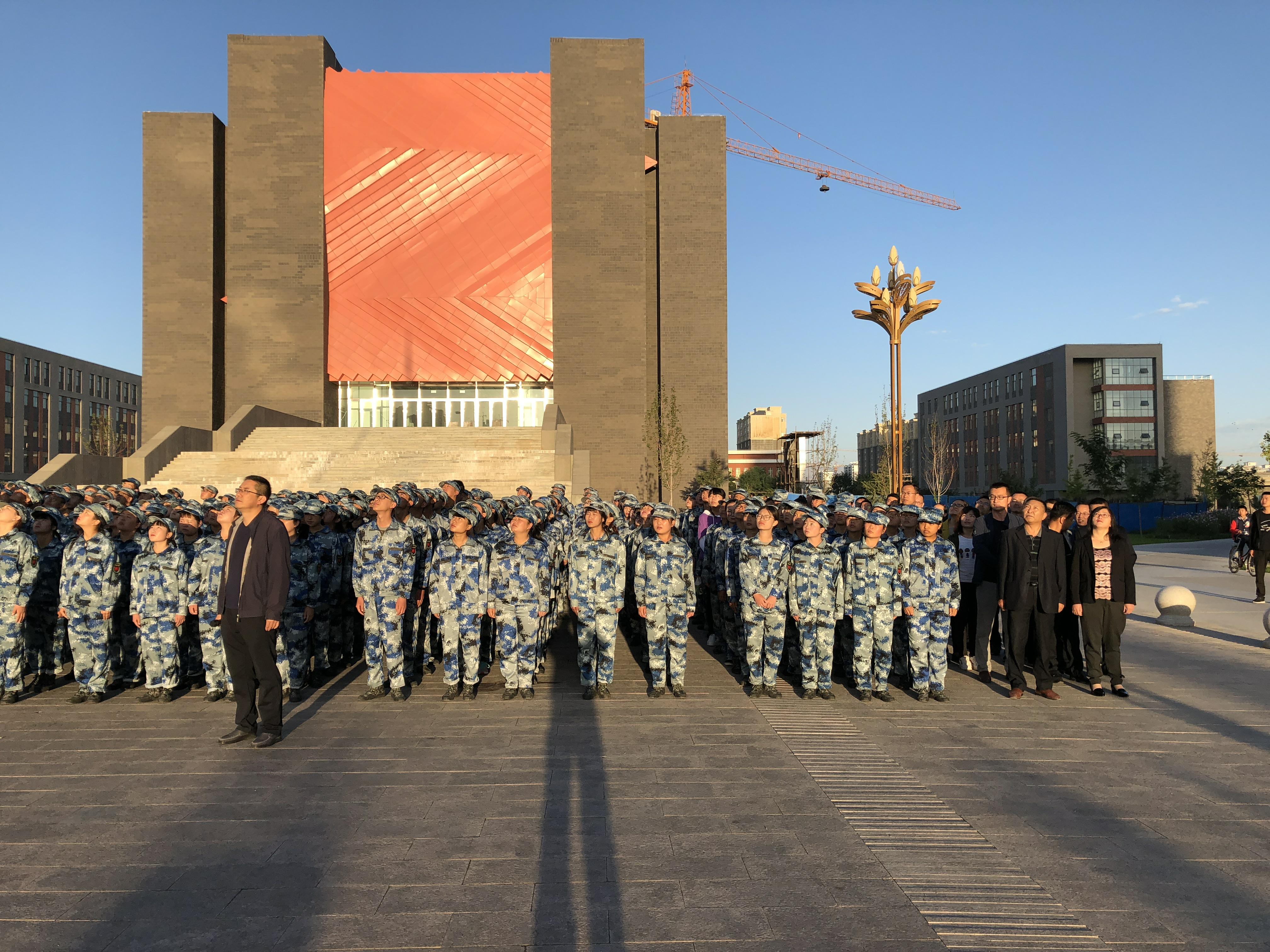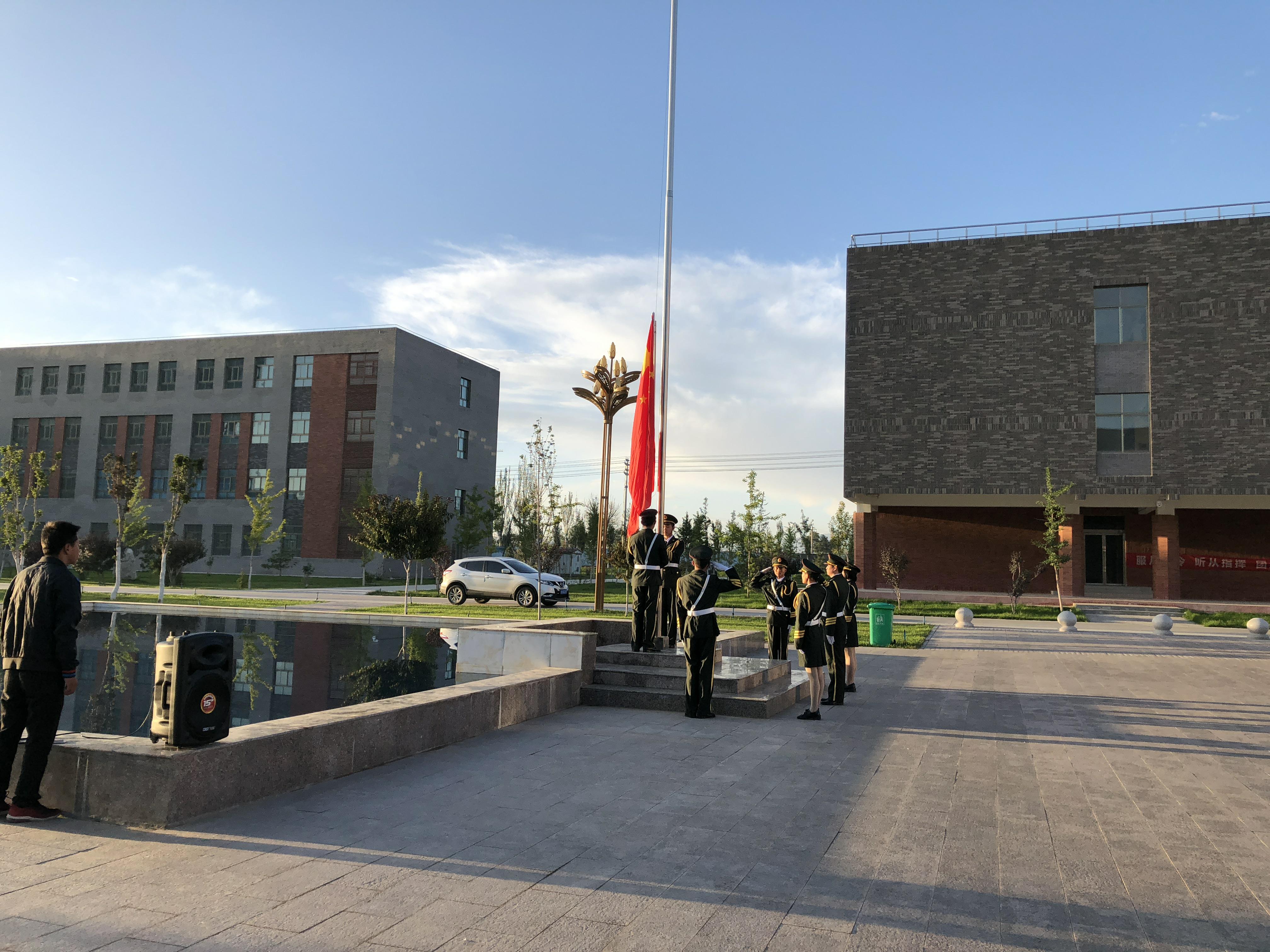 ??? 師生們精神飽滿,抬頭挺胸,伴著《義勇軍進(jìn)行曲》的響起,唱國(guó)歌、行注目禮,莊嚴(yán)肅穆。