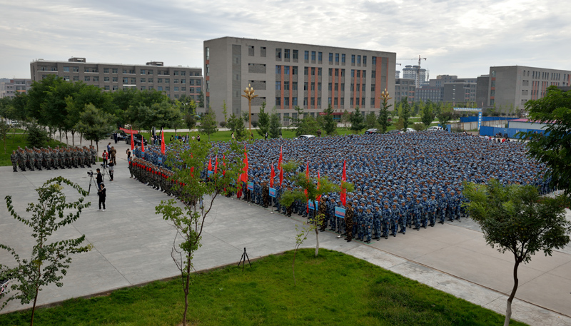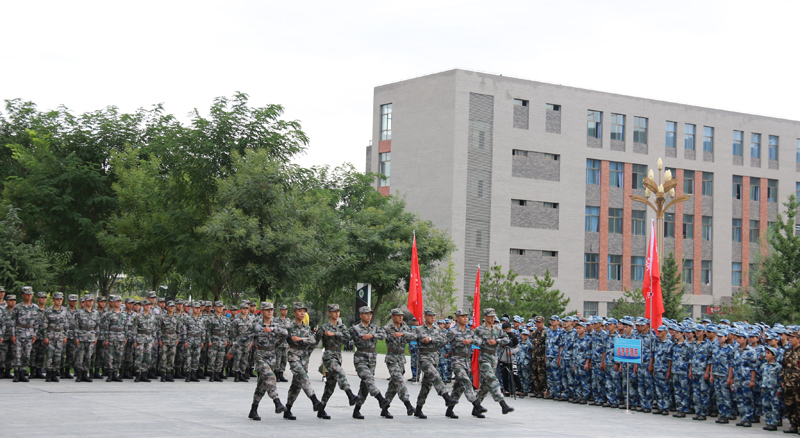 大會現(xiàn)場,田迎春向承訓(xùn)單位授予軍訓(xùn)團(tuán)旗。大會在雄壯的《中國人民解放軍軍歌》聲中拉開了軍訓(xùn)序幕。