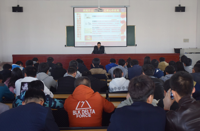 翟存祥從社會(huì)主義核心價(jià)值觀的時(shí)代背景、社會(huì)主義核心價(jià)值觀的頂層設(shè)計(jì)、核心價(jià)值觀與核心價(jià)值體系的關(guān)系、社會(huì)主義核心價(jià)值觀的系統(tǒng)培育、社會(huì)主義核心價(jià)值觀的全面踐行等五個(gè)方面,分析了中國(guó)共產(chǎn)黨價(jià)值取向的發(fā)展歷程、培育和踐行社會(huì)主義核心價(jià)值觀的重要性和迫切性,培育和踐行社會(huì)主義核心價(jià)值觀對(duì)實(shí)現(xiàn)中國(guó)夢(mèng)的重要現(xiàn)實(shí)意義和深遠(yuǎn)歷史意義,以及培育和踐行社會(huì)主義核心價(jià)值觀的措施等問(wèn)題,并對(duì)為什么要培育和踐行、怎么培育和踐行作了系統(tǒng)和精彩的解讀。翟存祥指出,十八大報(bào)告將社會(huì)主義核心價(jià)值觀凝練為24個(gè)字:“富強(qiáng)、民主、文明、和諧;自由、平等、公正、法治;愛國(guó)、敬業(yè)、誠(chéng)信、友善”,從國(guó)家、社會(huì)、個(gè)人三個(gè)層面,簡(jiǎn)單扼要、簡(jiǎn)約樸實(shí)、簡(jiǎn)潔通俗地提出了社會(huì)主義核心價(jià)值觀的新表達(dá),也為當(dāng)今中國(guó)社會(huì)的核心價(jià)值觀構(gòu)建提出了新要求。社會(huì)主義核心價(jià)值觀既有理論的延續(xù)性,又有現(xiàn)實(shí)的針對(duì)性;既有目標(biāo)追求,又有價(jià)值導(dǎo)向,還有行為準(zhǔn)則,是人心所愿、眾望所歸。翟存祥結(jié)合學(xué)院發(fā)展實(shí)際,要求學(xué)生黨員及班團(tuán)干部從現(xiàn)在做起,從自己做起,努力向上,踐行社會(huì)主義核心價(jià)值觀,追求有信念,有夢(mèng)想,有奮斗,有奉獻(xiàn)的人生,讓自己的人生更有意義。