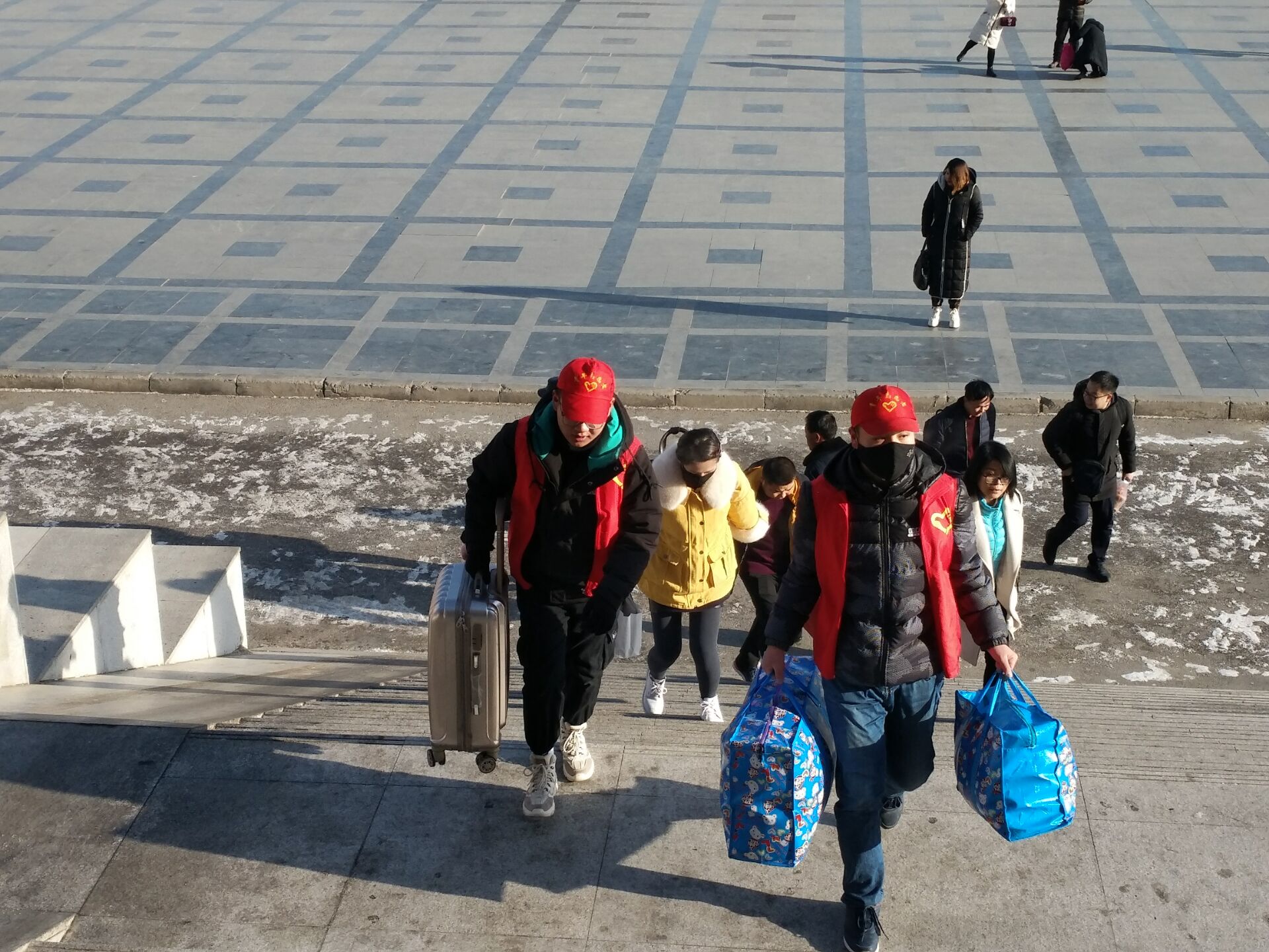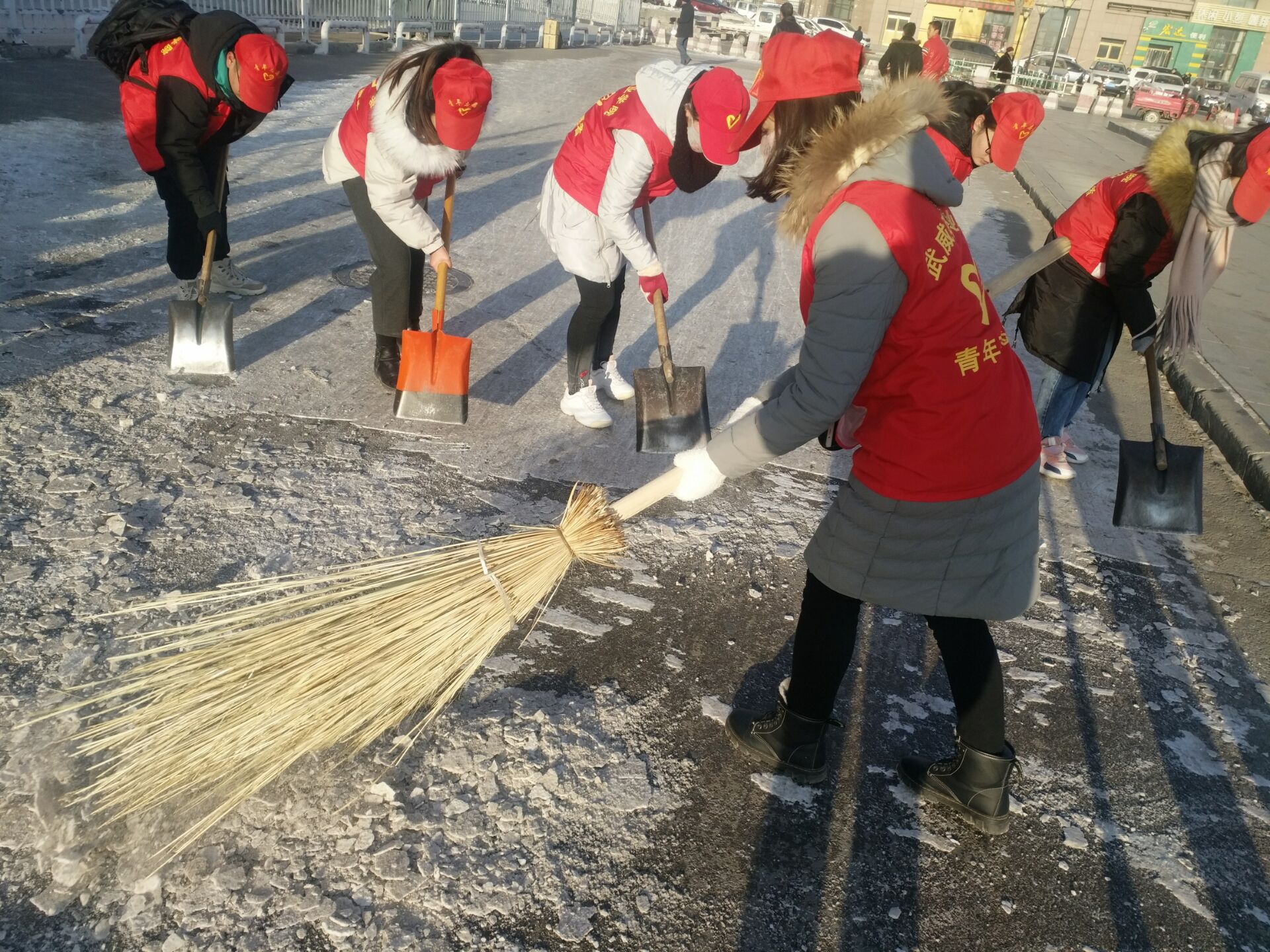 當天上午,志愿者們攜著冬日的暖陽將愛撒播在的服務(wù)的每一個角落,忙的不亦樂乎。學生志愿者一個個身穿紅馬夾穿梭在火車站及汽車站一帶幫助行人提東西、拉皮箱,清掃路面積雪、清除街道長期殘留的垃圾等。志愿者們用自己的雙手拾撿著行人留下的煙頭和瓜子皮,他們不畏嚴寒,默默地奉獻著熱情和溫暖。經(jīng)過的人們紛紛向志愿者們投向了贊許與致謝的目光。