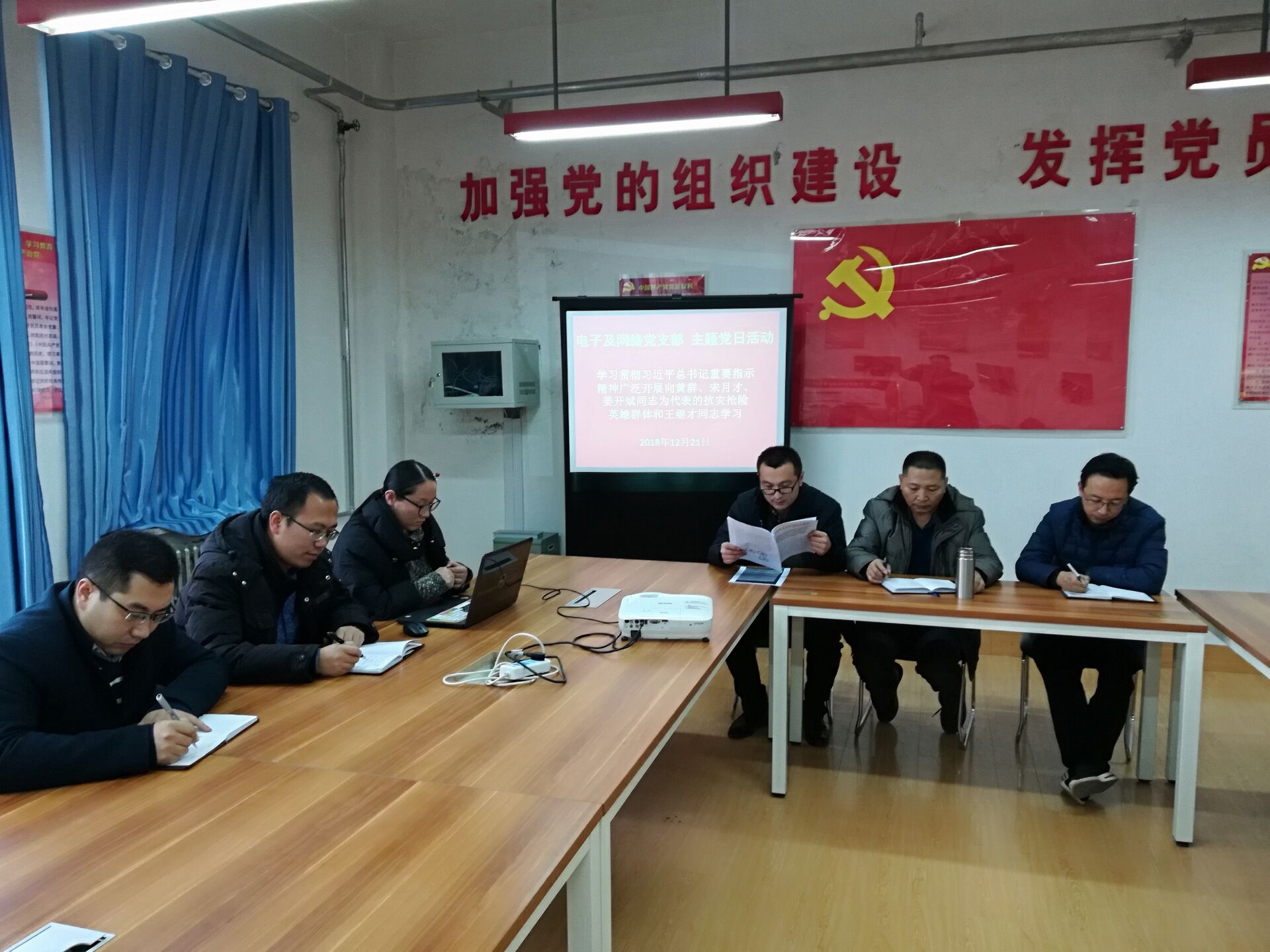 2018年12月21日,電子及網(wǎng)絡(luò)黨支部組織開(kāi)展“不忘初心、牢記使命——學(xué)習(xí)全國(guó)、全省優(yōu)秀共產(chǎn)黨員先進(jìn)事跡”主題黨日活動(dòng),電子及網(wǎng)絡(luò)黨支部全體黨員參加學(xué)習(xí)。
