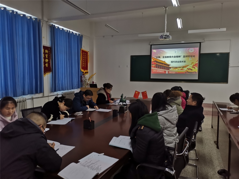 12月24日,現(xiàn)代農(nóng)業(yè)技術(shù)系在行書樓教學(xué)區(qū)309辦公室召開宣講“全國、全省教育大會(huì)精神”。宣講對談會(huì)由系黨總支書記晏素珍主持,全系教師參加并發(fā)言交流教育大會(huì)精神。