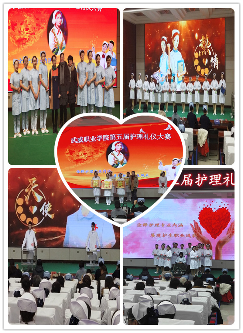 為弘揚(yáng)南丁格爾精神,強(qiáng)化護(hù)生禮儀修養(yǎng),推進(jìn)護(hù)理專業(yè)深層次內(nèi)涵式發(fā)展,助推我市文明城市建設(shè),12月21日,在大學(xué)生活動中心菁英廳舉辦了“武威職業(yè)學(xué)院第五屆護(hù)理禮儀大賽”。學(xué)院黨委書記、院長趙明、學(xué)院副院長田迎春、院工會主席金玉龍、教務(wù)處處長仲生仁、學(xué)生工作處處長王守云、招生就業(yè)處處長蔡柱山、科研處處長張玉琴、圖書館館長黃雪梅、電子信息黨總支書記袁青年應(yīng)邀出席本次活動,護(hù)理系300多名師生觀看了本次比賽。
