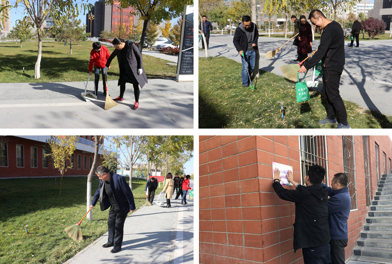支部全體黨員在大學(xué)生活動(dòng)中心門口、風(fēng)雨操場(chǎng)及校園馬路清掃落葉和垃圾,并對(duì)沿線衛(wèi)生死角進(jìn)行清理,對(duì)不文明行為進(jìn)行即時(shí)勸導(dǎo)。在教學(xué)樓、活動(dòng)中心、公寓樓、食堂等建筑物的醒目位置張貼20余張“創(chuàng)建文明校園”、“禁止吸煙”等標(biāo)志。通過(guò)開(kāi)展“創(chuàng)建文明校園”活動(dòng),進(jìn)一步提升我院“創(chuàng)建文明城市”迎檢和“創(chuàng)建文明校園”活動(dòng)效果。