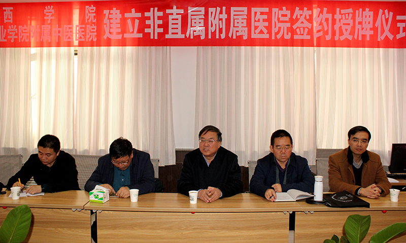 河西學院副校長張勇,教務處長趙柱,臨床醫(yī)學院院長薛國慶,教務處副處長楊彬,臨床醫(yī)學院副院長田永衍一行5人與武威職業(yè)學院黨委委員、副院長翟存祥,學院附屬中醫(yī)醫(yī)院黨委書記陳鋼,院長曹生有,副院長毛照海、宗武三、侯高,工會主席李文輝共同出席了簽約授牌儀式。