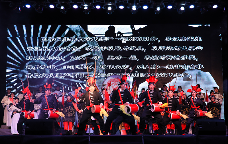 近年來,學院師生創(chuàng)作、改編了許多反映地方特色和校園生活主題的節(jié)目。其中晚會上由我院教師自編原創(chuàng)的大型吟誦舞臺劇《金戈鐵馬入夢涼州》邀請了國家級非物質(zhì)文化遺產(chǎn)涼州攻鼓子助力表演,結(jié)合戲曲、舞蹈、器樂等形式,全方位展示了涼州文化深厚的底蘊和鮮明的地域特色,涼州攻鼓子表演更是蕩氣回腸,讓現(xiàn)場師生充分領略了傳統(tǒng)文化的博大精深和獨特魅力。大學生藝術(shù)團主持隊自編自演的詩歌朗誦《青春報告》,結(jié)合當代大學生青春夢想、歷史使命的創(chuàng)作和聲情并茂的演繹,體現(xiàn)了新青年對于理想與擔當?shù)娜陆庾x。大學生藝術(shù)團曲藝隊自導改編的相聲《新生入學指南》,以詼諧幽默的形式講解了大一新生入學后的趣味生活,贏得了新同學們的共鳴和陣陣掌聲。