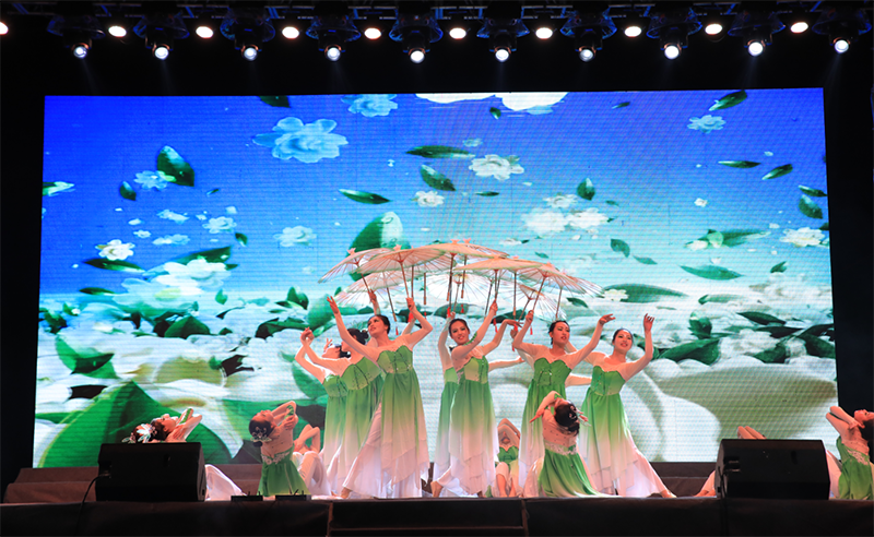 晚會中,在音樂學科專業(yè)頗有建樹的幾位老師表演了高水準的器樂合奏《贊歌》,讓師生陶醉于器樂演奏的優(yōu)美旋律和意境,贏得了全場經(jīng)久不息的掌聲。大學生藝術(shù)團舞蹈隊和聲樂隊表演的歌伴舞《紅旗飄飄》《美麗中國》激情四射、唯美動聽,詮釋了青年學子對祖國的熱愛和深情祝福。人文藝術(shù)教育系選送的現(xiàn)代舞《追逐夢想》用歡快的舞步展現(xiàn)了青年最富有朝氣、最富有夢想的精神風貌,《茉莉花開》更是讓師生陶醉于傳統(tǒng)舞蹈的優(yōu)美意境。雙人舞表演《鄉(xiāng)·遠方》舞蹈動作豪放、粗狂但不失委婉、細致,為我們呈現(xiàn)出“天之驕子”的氣概。校園好聲音教師組冠軍和學生組冠軍合唱的歌曲《你是我的眼》傳唱了職院好聲音,定格了大家的青春記憶。校園二把手樂隊帶來的歌曲《平凡之路》引起全場轟動,將晚會推向了高潮,同學們紛紛點亮了自己的手機,現(xiàn)場匯成了一片充滿歌聲的“星?!薄?/p>