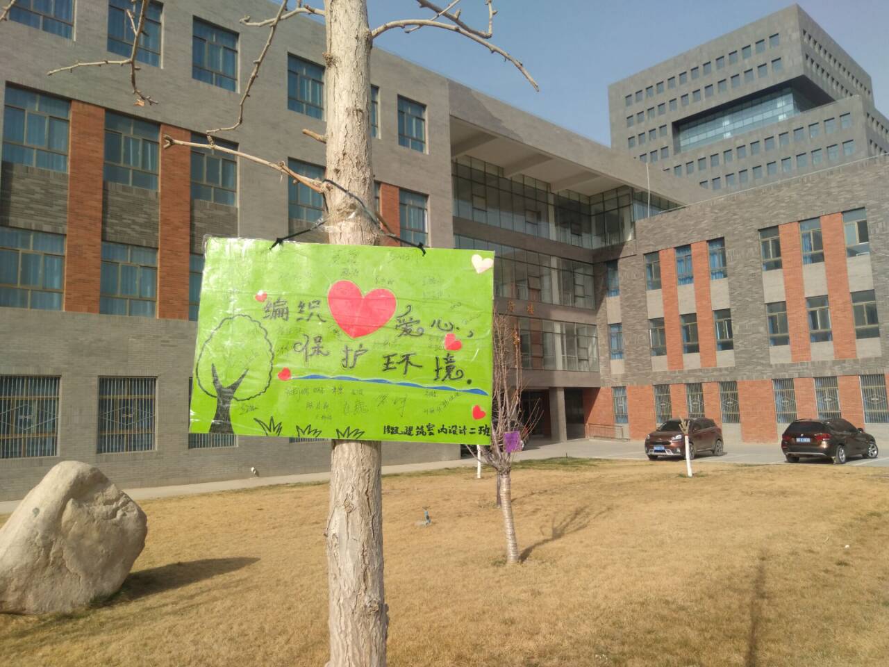 ? ?為助力創(chuàng)建文明城市,構(gòu)建文明綠色環(huán)保校園。4月2日建筑工程系學(xué)生分會(huì)聯(lián)合各班級(jí)在環(huán)境區(qū)域設(shè)立愛(ài)護(hù)校園草坪的標(biāo)語(yǔ)牌活動(dòng)。 ? ? ?