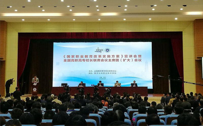 近日,《國(guó)家職業(yè)教育改革實(shí)施方案》宣講會(huì)暨全國(guó)高職高專校長(zhǎng)聯(lián)席會(huì)議主席團(tuán)(擴(kuò)大)會(huì)議在黃河水利職業(yè)技術(shù)學(xué)院召開。教育部職業(yè)教育與成人教育司副司長(zhǎng)謝俐出席會(huì)議。學(xué)院黨委書記、院長(zhǎng)趙明與全國(guó)高職高專校長(zhǎng)聯(lián)席會(huì)議主席團(tuán)成員、全國(guó)高職高專院校負(fù)責(zé)人代表等700余人參加會(huì)議。會(huì)議由全國(guó)高職高專校長(zhǎng)聯(lián)席會(huì)議主席、中國(guó)職業(yè)技術(shù)教育學(xué)會(huì)副會(huì)長(zhǎng)、天津職業(yè)大學(xué)原校長(zhǎng)董剛主持。