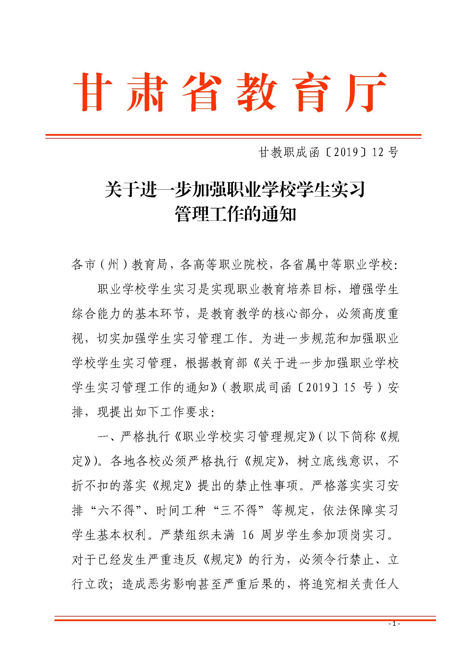 關(guān)于進(jìn)一步加強(qiáng)職業(yè)學(xué)校學(xué)生實(shí)習(xí)管理工作的通知