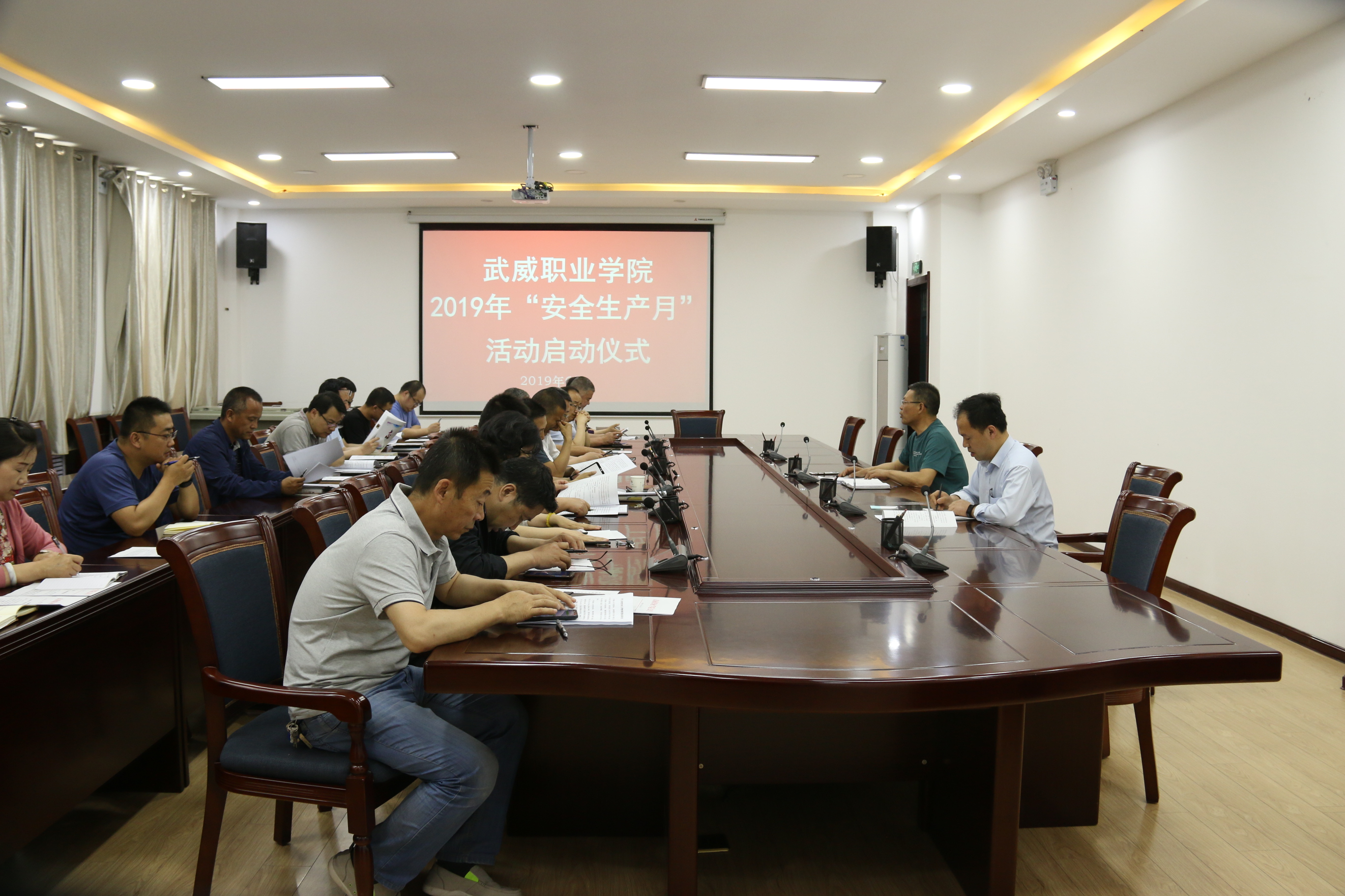 會議傳達(dá)了《2019年全省教育系統(tǒng)“安全生產(chǎn)月”和“安全生產(chǎn)隴原行”活動實(shí)施方案》精神,對我院2019年“安全生產(chǎn)月”活動做了動員部署。