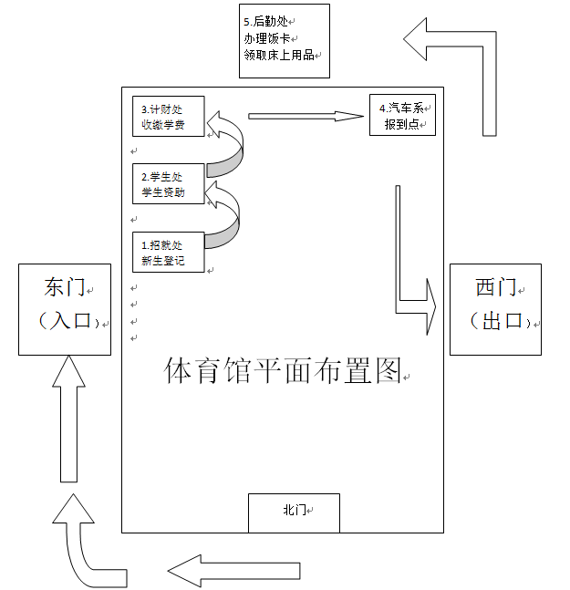 報到地點為大學(xué)生活動中心體育館內(nèi)。