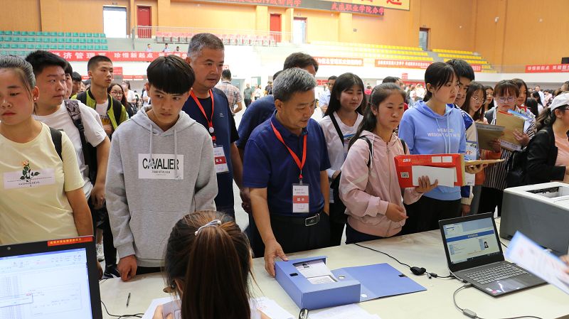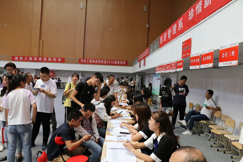 學(xué)院安排專車前往武威火車站、汽車站,為新生及家長提供全天候接站服務(wù),并為送行家長專設(shè)了休息區(qū)。安保人員指揮車輛有序停放,保障安全有序的校園環(huán)境。工作人員引導(dǎo)新生辦理入校手續(xù),報到、繳費(fèi)、入班、物品發(fā)放等各個環(huán)節(jié)有條不紊、高效暢通。體育館的電子屏上不斷播放學(xué)院宣傳片、大型公益短片,增強(qiáng)了新生及家長對學(xué)院的了解、認(rèn)可和熱愛。為幫助家庭經(jīng)濟(jì)困難學(xué)生順利入學(xué),學(xué)院還設(shè)立了“綠色通道”服務(wù)點(diǎn),為家庭經(jīng)濟(jì)困難學(xué)生辦理緩交(減免)學(xué)費(fèi)和生源地信用助學(xué)貸款登記手續(xù)。