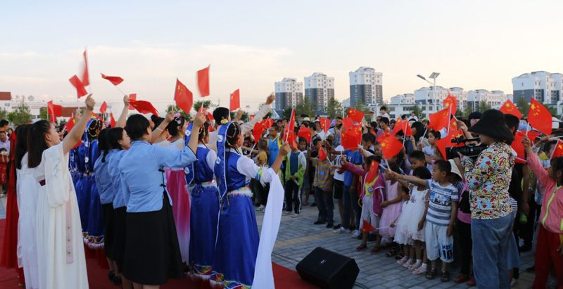 惠民演出由節(jié)目表演和互動環(huán)節(jié)等形式展開,溫情與火熱并舉,形式多樣,精彩紛呈。藝術(shù)團成員精心組織,編排了群眾喜聞樂見、貼近基層生活實際的文藝節(jié)目15個,包含藏族舞、傣族舞、新疆舞、歌伴舞、樂隊表演、音詩畫朗誦、獨唱、葫蘆絲合奏等。演出過程中,一首首愛國歌曲將演出推向高潮,《我愛你中國》、《我和我的祖國》歌曲的演繹,現(xiàn)場的所有人跟著歌曲揮動手中的小紅旗合唱,帶動了所有人的愛國熱情,也是對家國情懷的最好詮釋。歌伴舞《不忘初心》傳達了廣大青年對黨和祖國的歌頌和熱愛,展現(xiàn)了新時代青年奮發(fā)進取、不忘初心,持續(xù)煥發(fā)青春正能量的精神風貌。此外,演出將黨的扶貧惠民政策宣傳融入節(jié)目當中,當?shù)厝罕娨卜e極登臺表演了精彩節(jié)目,不僅使節(jié)目內(nèi)容生動豐富接地氣,更彰顯了近年來農(nóng)村的新變化和新面貌。