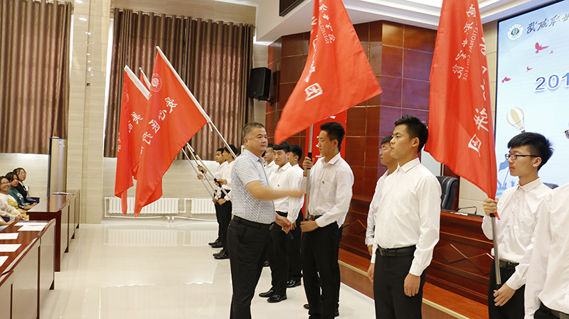 7月11日下午,學(xué)院2019年暑期“三下鄉(xiāng)”社會(huì)實(shí)踐活動(dòng)出征儀式在菁英廳舉行。黨委委員、副院長(zhǎng)、學(xué)生工作處處長(zhǎng)王守云出席活動(dòng)并為實(shí)踐團(tuán)隊(duì)授旗,院團(tuán)委全體干部、各系團(tuán)委書記、各實(shí)踐隊(duì)指導(dǎo)老師和隊(duì)員共160余人參加了出征儀式。