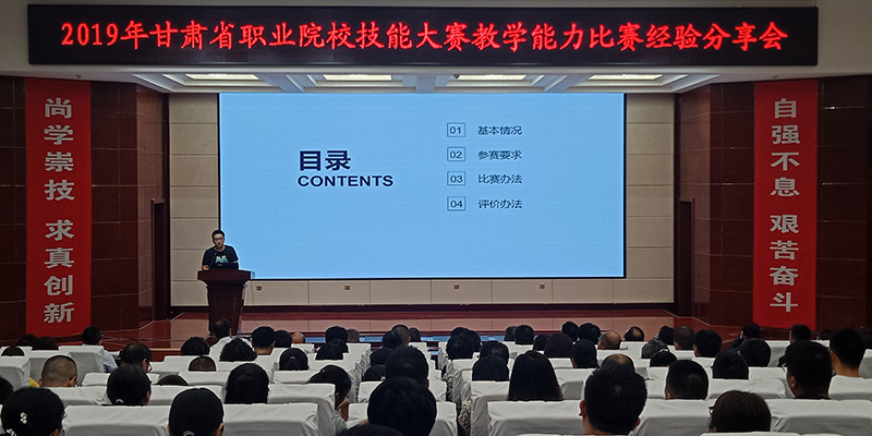 2019年全省職業(yè)院校技能大賽教學(xué)能力比賽于7月1日至7月5日在甘肅省交通職業(yè)技術(shù)學(xué)院舉行,學(xué)院6件作品23名教師參加比賽,并取得了優(yōu)異的成績。7月8日學(xué)院舉辦了比賽經(jīng)驗分享會,各相關(guān)部門、單位負(fù)責(zé)人、中青年骨干教師、兼職教師、教務(wù)處和項目辦相關(guān)人員共210多名教師參加。
