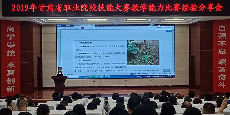 分享會由翟存祥副院長主持,并就本次參賽意義作了深刻點評,鼓勵中青年骨干教師積極參賽,以賽促學(xué)、以賽促教。教務(wù)處副處長張世亮介紹了甘肅省2019年職業(yè)院校技能大賽教學(xué)能力比賽規(guī)則和基本流程。邀請參賽優(yōu)秀教師團(tuán)隊分享參賽作品《耕耘天地間 綠色齊分享》《聲傳意調(diào)頌情 傳播中國聲音》和《堅守規(guī)則 守護(hù)生命安全》,展示教學(xué)資料、模擬現(xiàn)場比賽過程、分享比賽經(jīng)驗。