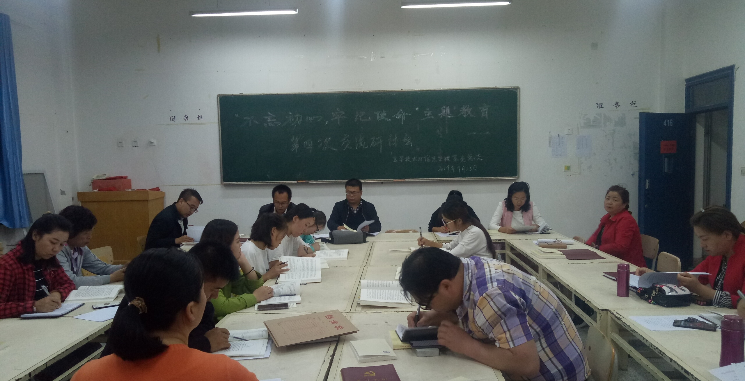 9月25日晚,醫(yī)學(xué)技術(shù)學(xué)院黨總支在明遠(yuǎn)樓416會議室召開“不忘初心、牢記使命”主題教育讀書班第四次交流研討會暨讀書班結(jié)業(yè)儀式。系全體黨員、非黨員教師及入黨積極分子參加了會議。系副主任蔡濟(jì)眾主持會議并做總結(jié)講話。