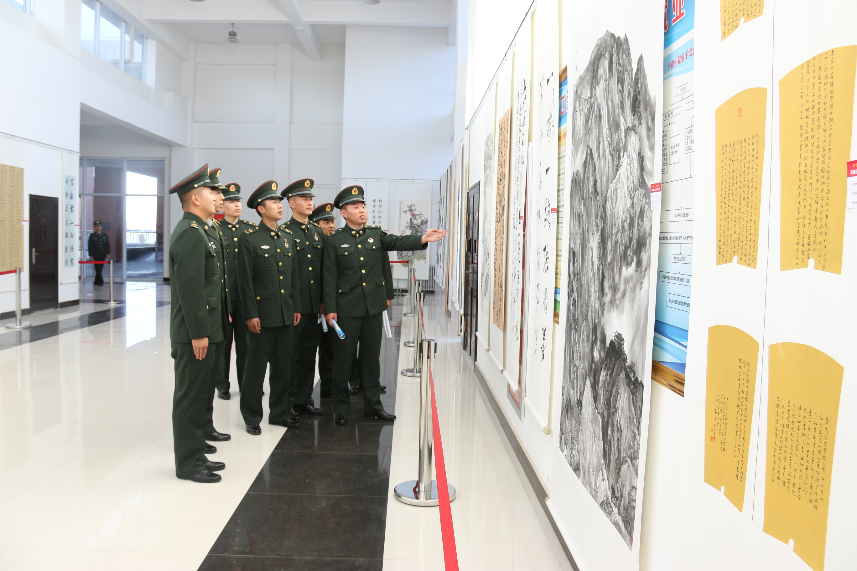 武威某駐地部隊官兵來我院參觀“不忘初心、牢記使命”武威美術(shù)書法作品交流展