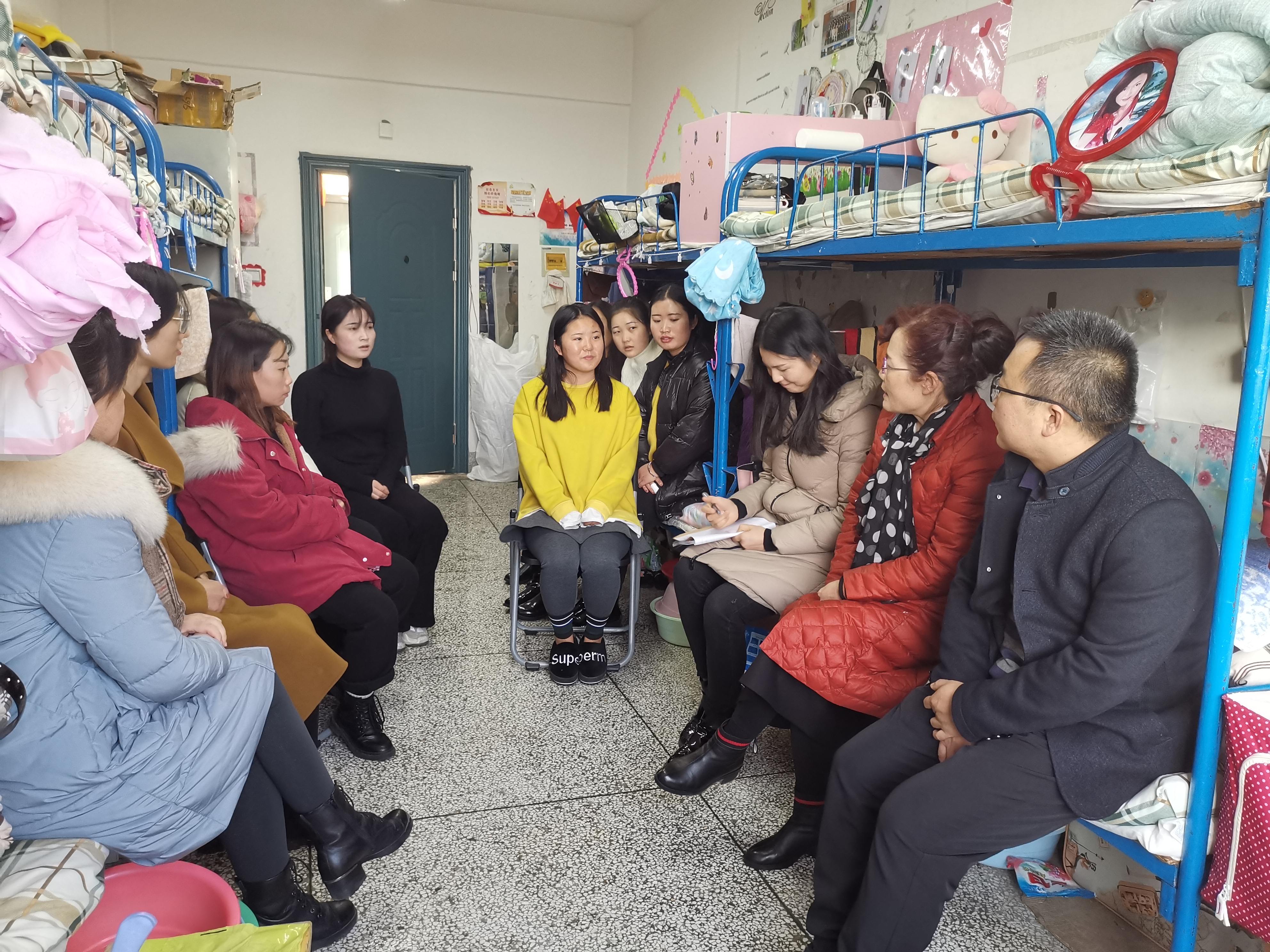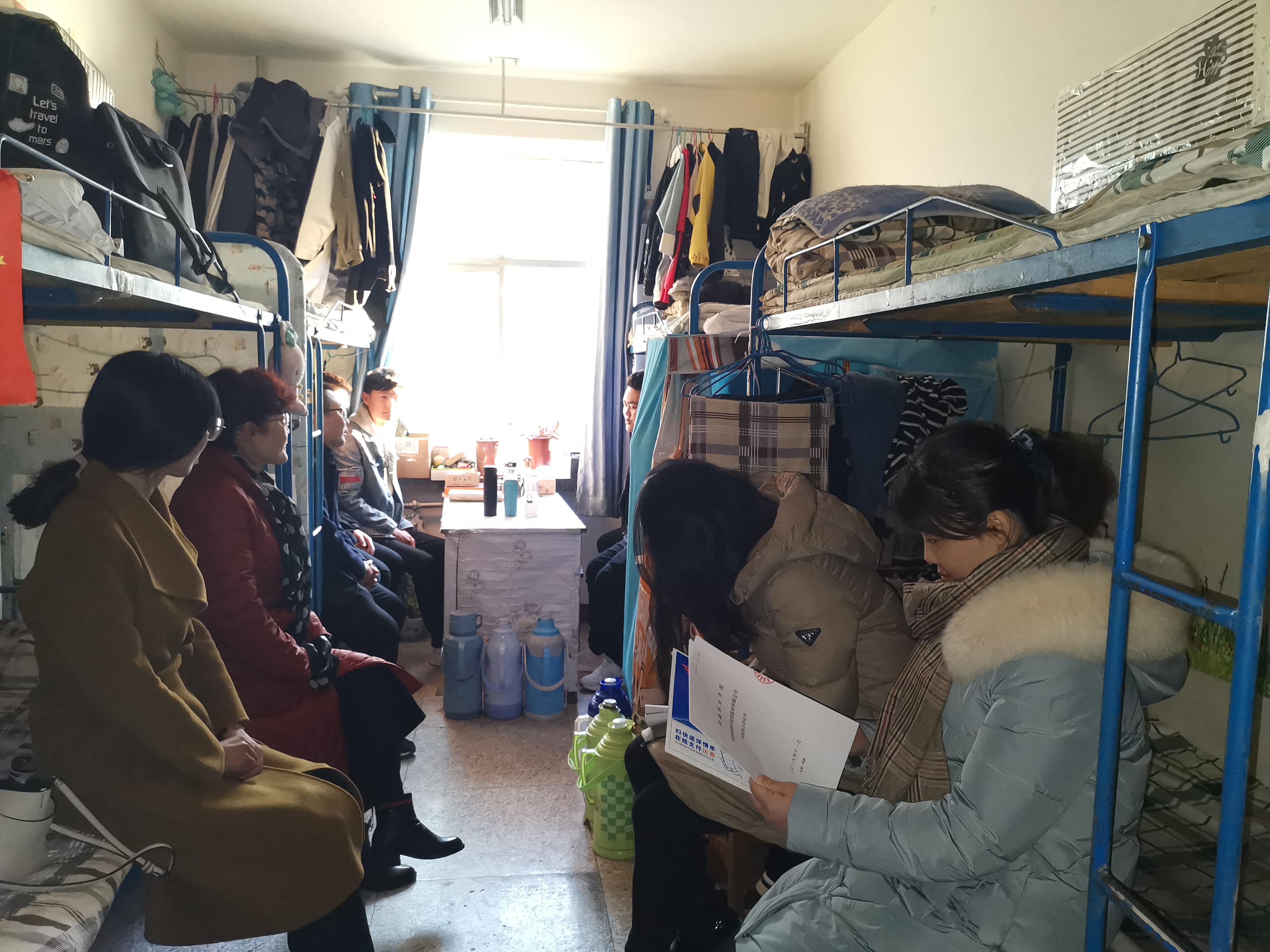 黨員在女生宿舍進行調(diào)研