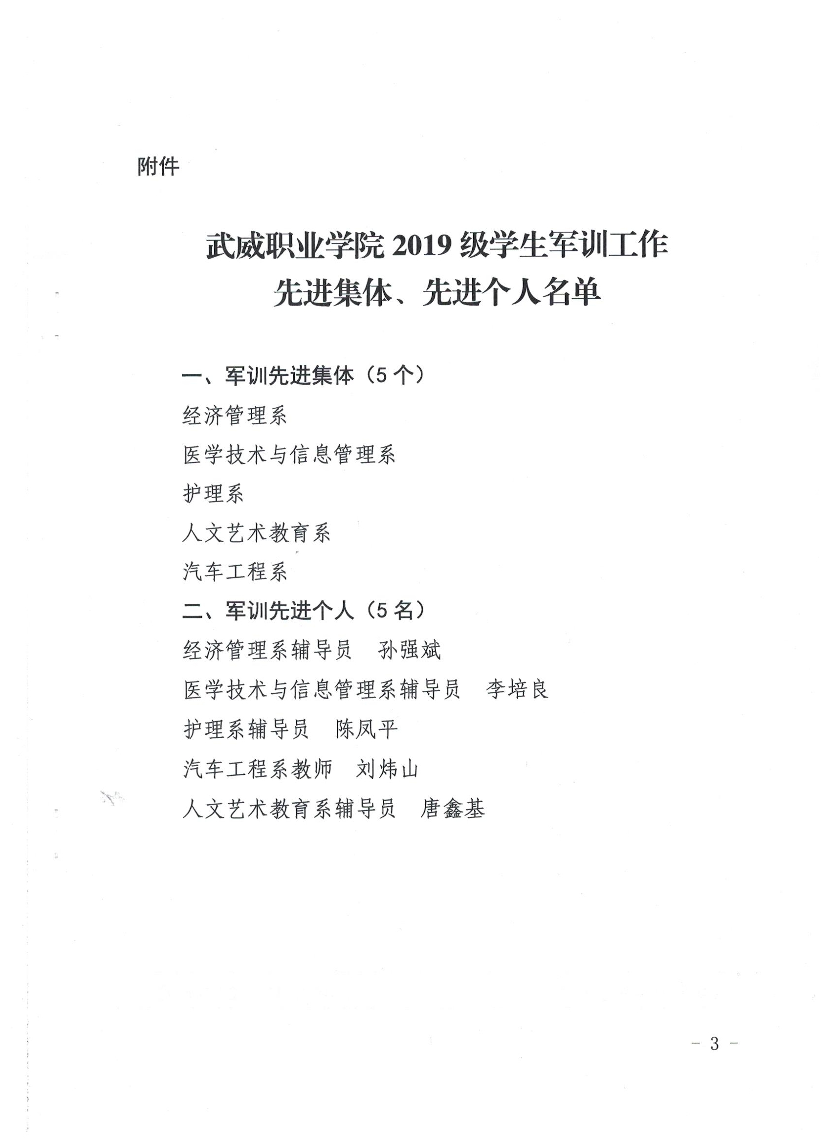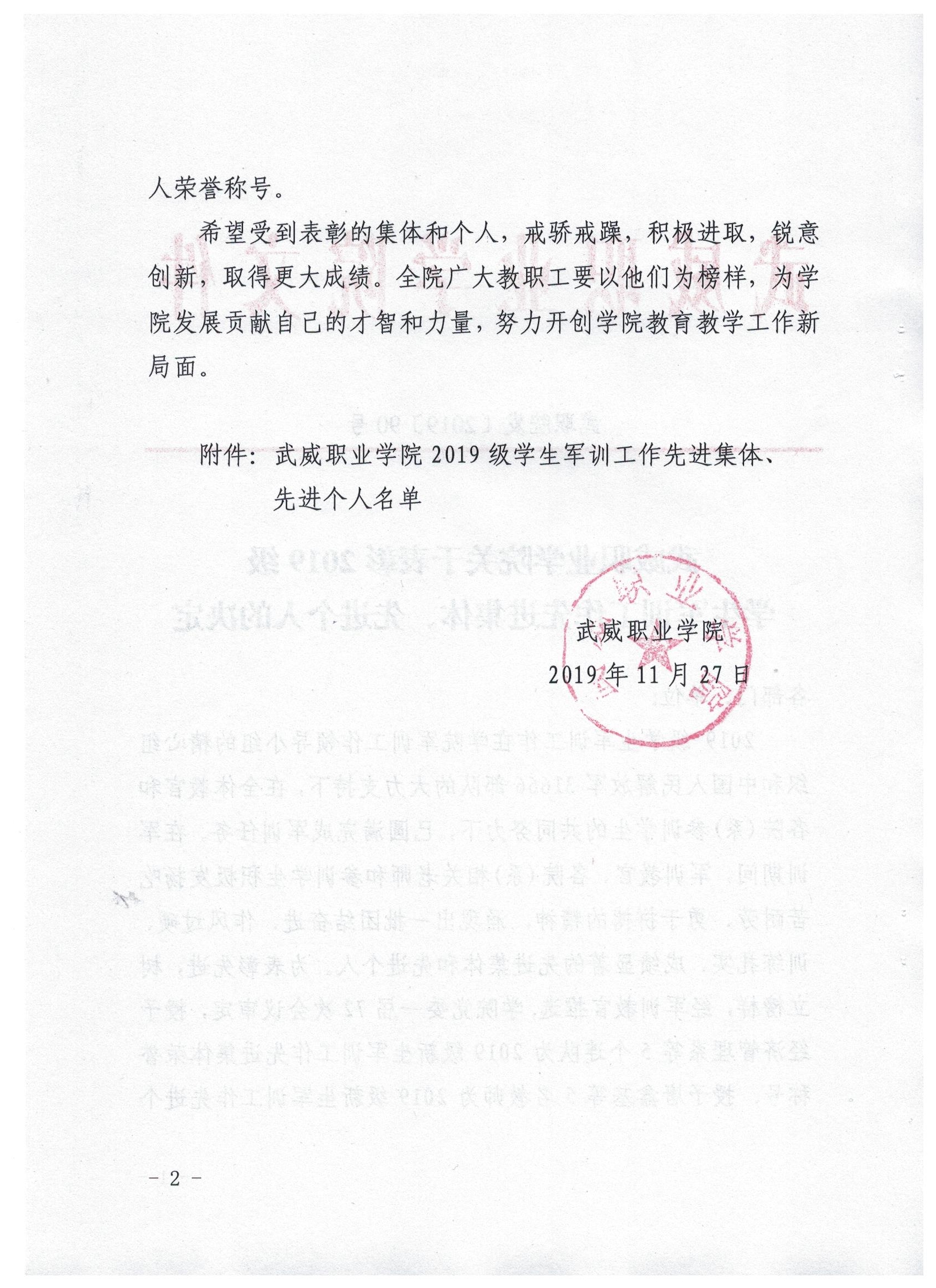 武威職業(yè)學(xué)院關(guān)于表彰2019級(jí)學(xué)生軍訓(xùn)工作先進(jìn)集體、先進(jìn)個(gè)人的決定