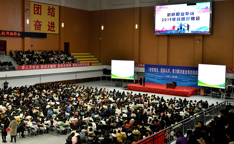 為貫徹2020屆全國普通高校畢業(yè)生就業(yè)創(chuàng)業(yè)工作網(wǎng)絡(luò)視頻會(huì)議精神,學(xué)院以習(xí)近平新時(shí)代中國特色社會(huì)主義思想為指導(dǎo),深入落實(shí)黨中央、國務(wù)院關(guān)于促進(jìn)高校畢業(yè)生就業(yè)創(chuàng)業(yè)的一系列重大決策部署,把畢業(yè)生就業(yè)工作擺在最突出位置,確保畢業(yè)生就業(yè)大局穩(wěn)定。12月14日上午,學(xué)院組織2020屆畢業(yè)生,在體育館參加了題為《轉(zhuǎn)變觀念,提高認(rèn)識(shí),著力解決就業(yè)難得困惑》的專家講座,引導(dǎo)畢業(yè)生轉(zhuǎn)變觀念、積極就業(yè)。講座由省人社廳人力資源市場檔案管理部部長姚力峰主講,招生就業(yè)處副處長董鵬主持。