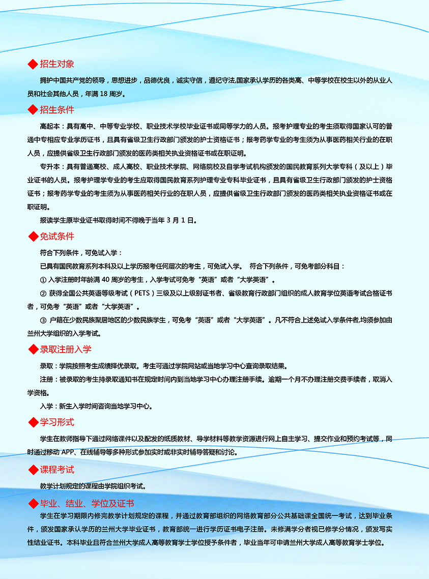 武威職業(yè)學院繼續(xù)教育學院2020年招生簡章