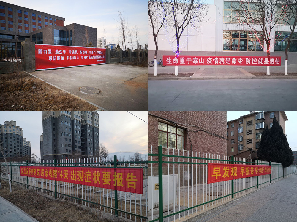 學(xué)院面向師生和社會人員,加強(qiáng)疫情防控內(nèi)外宣傳。在校園圍墻醒目位置設(shè)置內(nèi)容為:“戴口罩、勤洗手、常通風(fēng)、拒野味、不串門、不聚會”,“聯(lián)防聯(lián)控、群防群治、堅(jiān)決打贏疫情防控阻擊戰(zhàn)”等宣傳標(biāo)語;在校園內(nèi)、家屬區(qū)等地顯著位置設(shè)置:“生命重于泰山、疫情就是命令、防控就是責(zé)任”,“重科學(xué)、聽官宣、不信謠、不傳謠”,“疫點(diǎn)返鄉(xiāng)回到家、居家觀察14天、出現(xiàn)癥狀要報(bào)告”,“早發(fā)現(xiàn)、早報(bào)告、早診斷、早治療”等宣傳標(biāo)語、橫幅。通過線上線下、校內(nèi)校外全方位教育、宣傳、號召、引導(dǎo),營造了師生和社會人員高度重視、科學(xué)嚴(yán)謹(jǐn)、從我做起、同舟共濟(jì)嚴(yán)格防控疫情的濃厚氛圍和戰(zhàn)勝疫情的堅(jiān)定信心,為早日打贏疫情防控戰(zhàn)凝聚了共識、匯聚了強(qiáng)大的精神力量。
