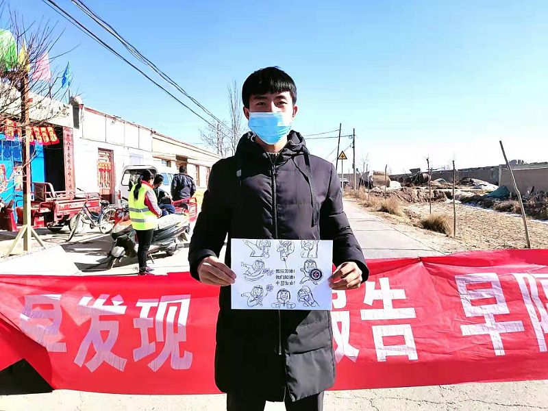 人文藝術(shù)教育系團(tuán)委副書(shū)記孫國(guó)祥,家在甘肅省定西市通渭縣平襄鎮(zhèn)中林村,在近期的防控疫情狙擊戰(zhàn)中,自愿參與到當(dāng)?shù)匾咔榉揽毓ぷ髦?,協(xié)助工作人員檢查過(guò)往車輛,并將他之前儲(chǔ)存的未拆封醫(yī)用口罩捐贈(zèng)給一起的工作人員。他表示,縱有疫情可怕似虎,亦有青年為國(guó)奉獻(xiàn)。打贏這場(chǎng)大仗、硬仗,每一個(gè)中國(guó)人都應(yīng)有防控疫情的責(zé)任,要有主動(dòng)行動(dòng)的自覺(jué)。武漢加油,中國(guó)加油!