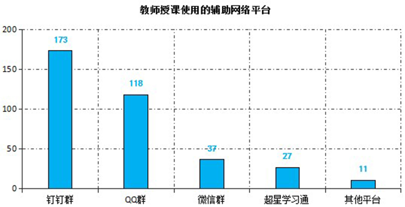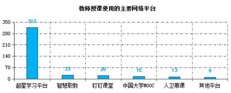 截止3月6日,教師使用武威職業(yè)學(xué)院在線教學(xué)平臺建設(shè)在線課程226門,使用超星學(xué)習(xí)通開展教學(xué)317次,釘釘課堂30次,智慧職教23次,中國大學(xué)MOOC15次,人衛(wèi)慕課13次,其他平臺9次。任課教師還選用釘釘群、QQ群或微信群等作為課程輔助交流平臺實施教學(xué)組織與管理。在線教學(xué)過程中,除開始時部分時段因同時在線人數(shù)過多導(dǎo)致網(wǎng)絡(luò)波動外,其他時間教學(xué)平臺均能穩(wěn)定運行,較好的保障了在線教學(xué)的順利實施。