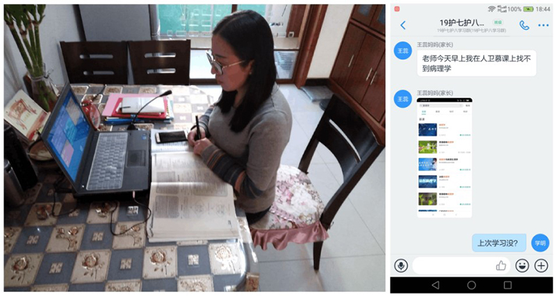 護理系教師陳調(diào)調(diào)利用釘釘群組織學(xué)生在線交流