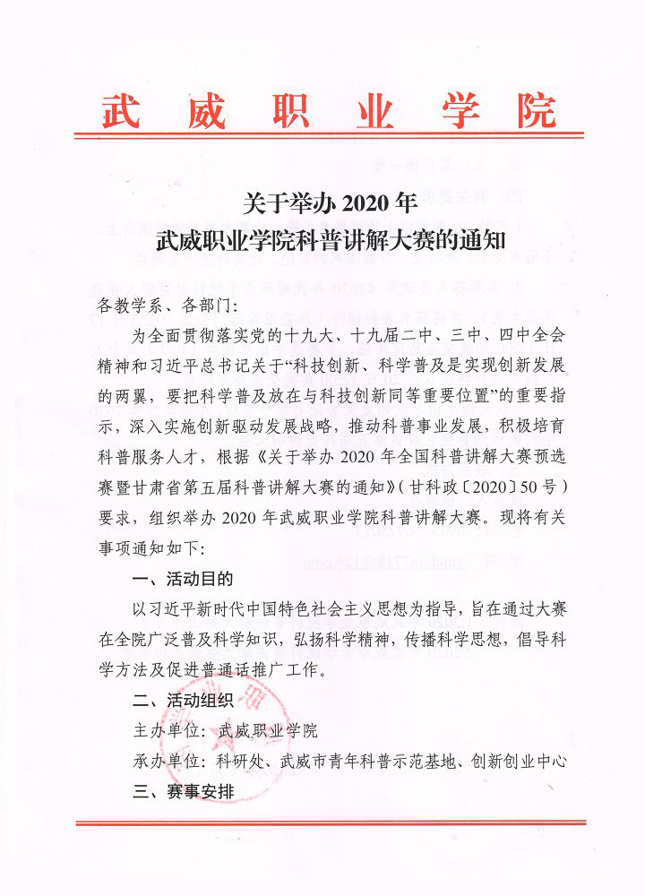 附件下載:2020年武威職業(yè)學院科普講解大賽報名表