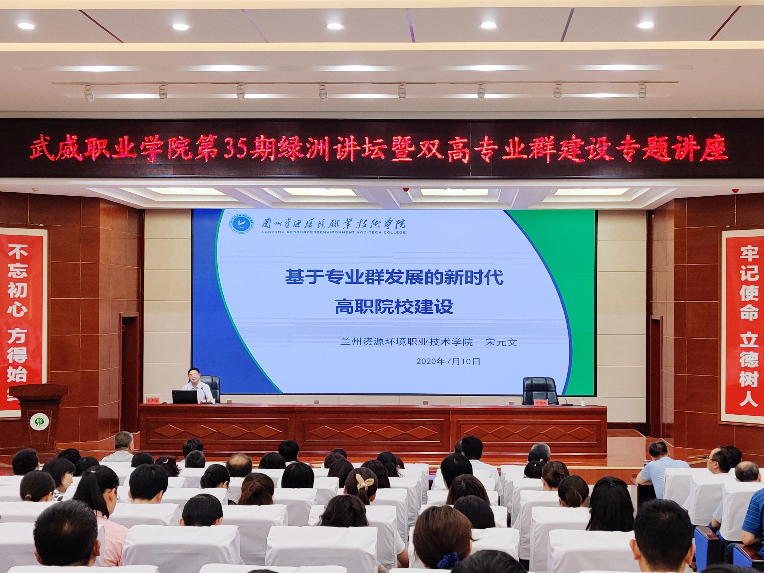 7月11日上午,學(xué)院在大學(xué)生活動(dòng)中心菁英廳舉辦第35期綠洲講壇暨雙高專業(yè)群建設(shè)專題講座。學(xué)院黨委書記、院長(zhǎng)趙明主持報(bào)告會(huì),黨委副書記翟存祥,黨委委員、副院長(zhǎng)田迎春、何毅、張開禮、王守云,武威職教集團(tuán)成員單位代表,學(xué)院各部門和教學(xué)院系負(fù)責(zé)人、專業(yè)負(fù)責(zé)人和教師代表共計(jì)200余人參加了報(bào)告會(huì)。圖為蘭州資源環(huán)境職業(yè)技術(shù)學(xué)院黨委委員、副院長(zhǎng)宋元文教授作“基于專業(yè)群發(fā)展的新時(shí)代高職院校建設(shè)”專題報(bào)告。