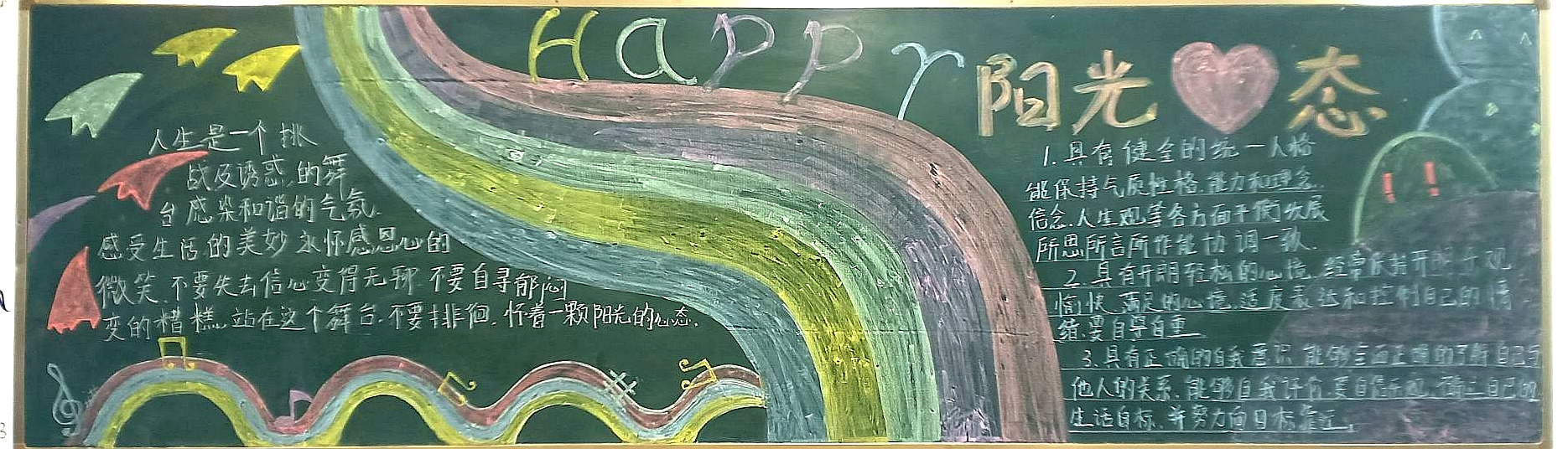 為進一步提高大學(xué)生的心理素質(zhì),促進大學(xué)生的身心健康和諧,宣傳普及心理健康知識,深入開展心理健康教育,我系結(jié)合學(xué)院特點,突出專業(yè)優(yōu)勢,在積極承擔(dān)和參與學(xué)校心理健康活動月的團日活動的同時,各班開展了豐富多彩的以“心理健康”為主題的黑板報。