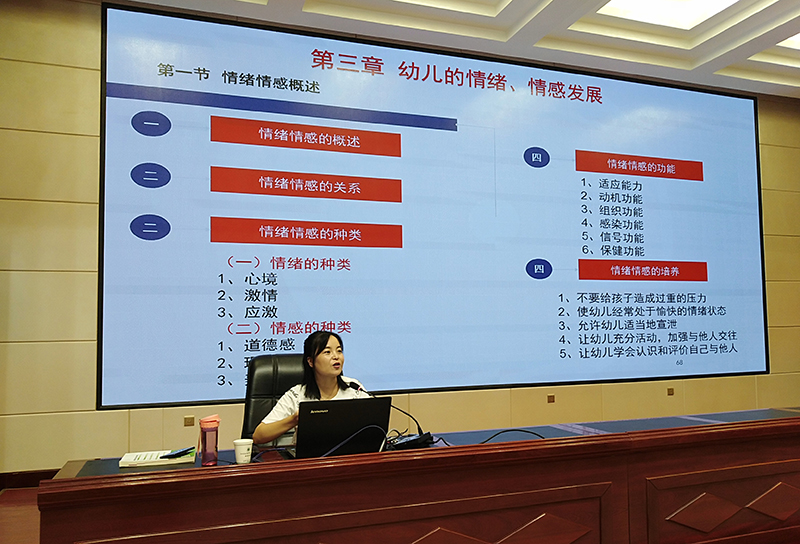 本次培訓(xùn)對(duì)象為來自民勤、古浪、天祝縣和涼州區(qū)民辦幼兒園教師中未取得教師資格證的人員共計(jì)120人,培訓(xùn)內(nèi)容為筆試、面試內(nèi)容輔導(dǎo),經(jīng)驗(yàn)交流和答疑互動(dòng)。8月17日—18日為期2天的培訓(xùn)工作中,何毅圍繞“幼兒教師資格考試面試技巧和教學(xué)能力測(cè)試”作專題輔導(dǎo)培訓(xùn),付成榮、秦娜分別圍繞“學(xué)前兒童教育學(xué)以及教育法規(guī)”、“學(xué)前兒童心理學(xué)”作了專題輔導(dǎo)培訓(xùn)。學(xué)院教師講課認(rèn)真嚴(yán)謹(jǐn),為參訓(xùn)學(xué)員作了全面、詳實(shí)的知識(shí)講授、經(jīng)驗(yàn)指導(dǎo)和解疑答惑,培訓(xùn)工作圓滿結(jié)束,得到了市教育局的充分肯定和參訓(xùn)學(xué)員的一致好評(píng)。