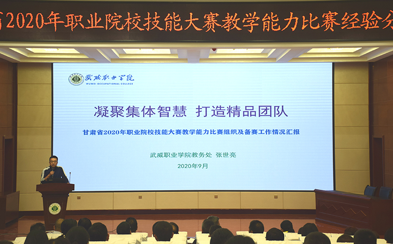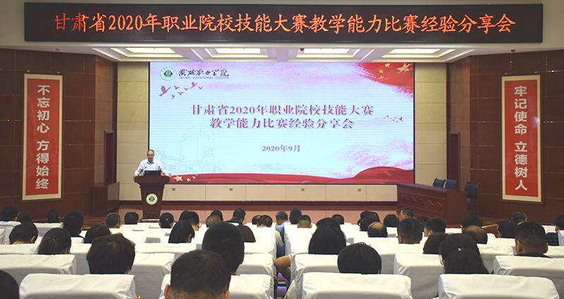 2020年9月2日上午,學(xué)院在菁英廳舉辦甘肅省2020年職業(yè)院校技能大賽教學(xué)能力比賽經(jīng)驗(yàn)分享會(huì),學(xué)院各級(jí)參賽隊(duì)員、院領(lǐng)導(dǎo)、中層以上管理干部、教學(xué)能力比賽指導(dǎo)組成員以及自愿報(bào)名參加分享會(huì)人員共210人參加,會(huì)議由學(xué)院黨委副書記翟存祥主持。
