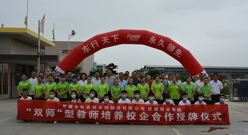 2020年7月9日上午9時,武威職業(yè)學(xué)院和甘肅牛電森祥車輛制造有限公司校企合作授牌儀式在牛電森祥廠區(qū)舉行。武威職業(yè)學(xué)院黨委副書記翟存祥同志,武威職業(yè)學(xué)院黨委委員、副院長張開禮、王守云同志,涼州區(qū)工業(yè)園區(qū)黨工委書記張鑫以及區(qū)科技局、工信局分管領(lǐng)導(dǎo)出席了授牌儀式。