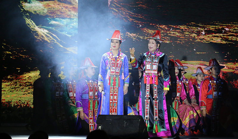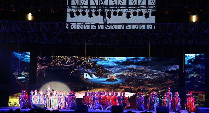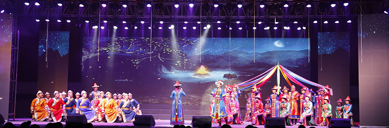 原創(chuàng)合唱音詩《薩娜瑪珂》取材于甘肅省獨有的少數(shù)民族裕固族的同名史詩,以裕固族民族女英雄為人物形象,以裕固族民族音樂為音樂基調(diào),以感人至深的故事情節(jié)為創(chuàng)意線索,全劇采用四部合唱、女高音領(lǐng)唱、男中音領(lǐng)唱以及朗誦等富有獨特表現(xiàn)力的藝術(shù)形式,生動再現(xiàn)了薩娜瑪珂的壯美人生和傳奇故事。原生態(tài)的民族音樂、如詩如畫的舞美、濃郁的民族風情,深深地感染了現(xiàn)場師生,贏得了陣陣熱烈的掌聲。